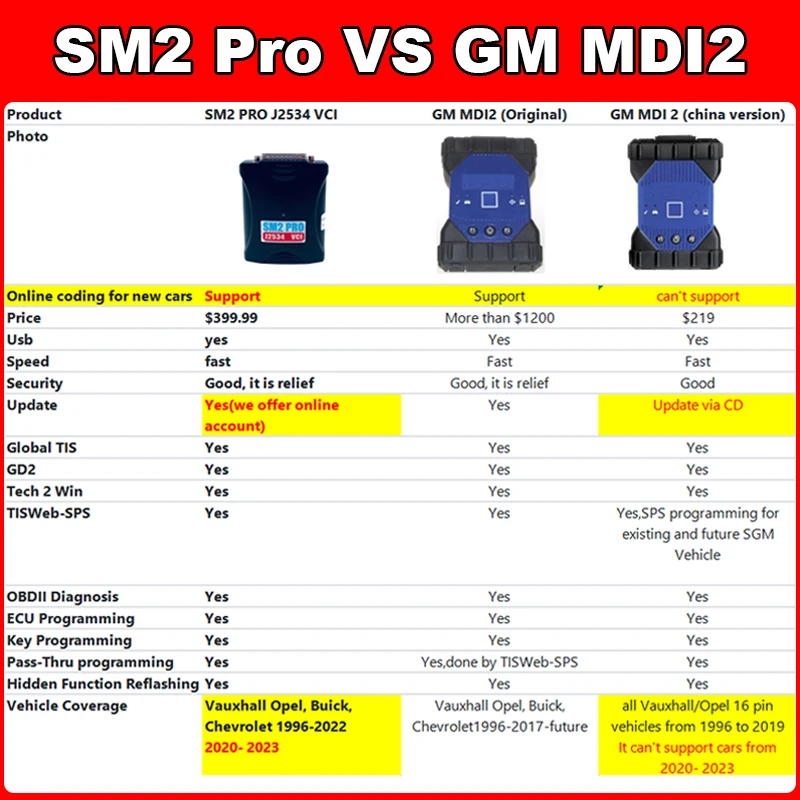 Разница между SM2 PRO J2534 VCI,Original MDI 2 и China MDI2: