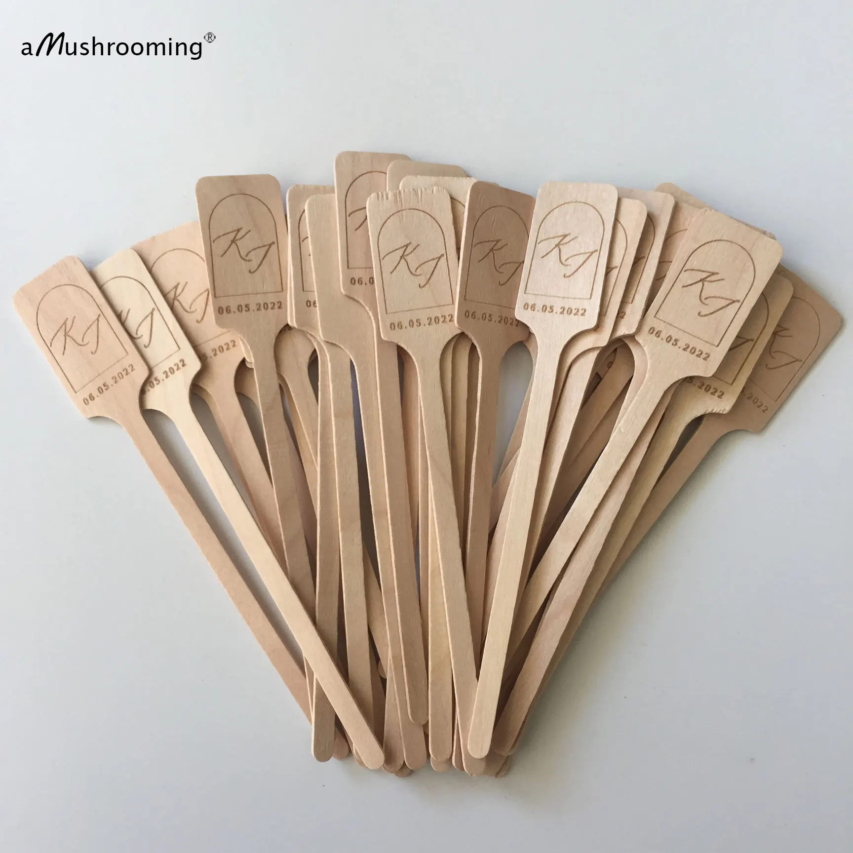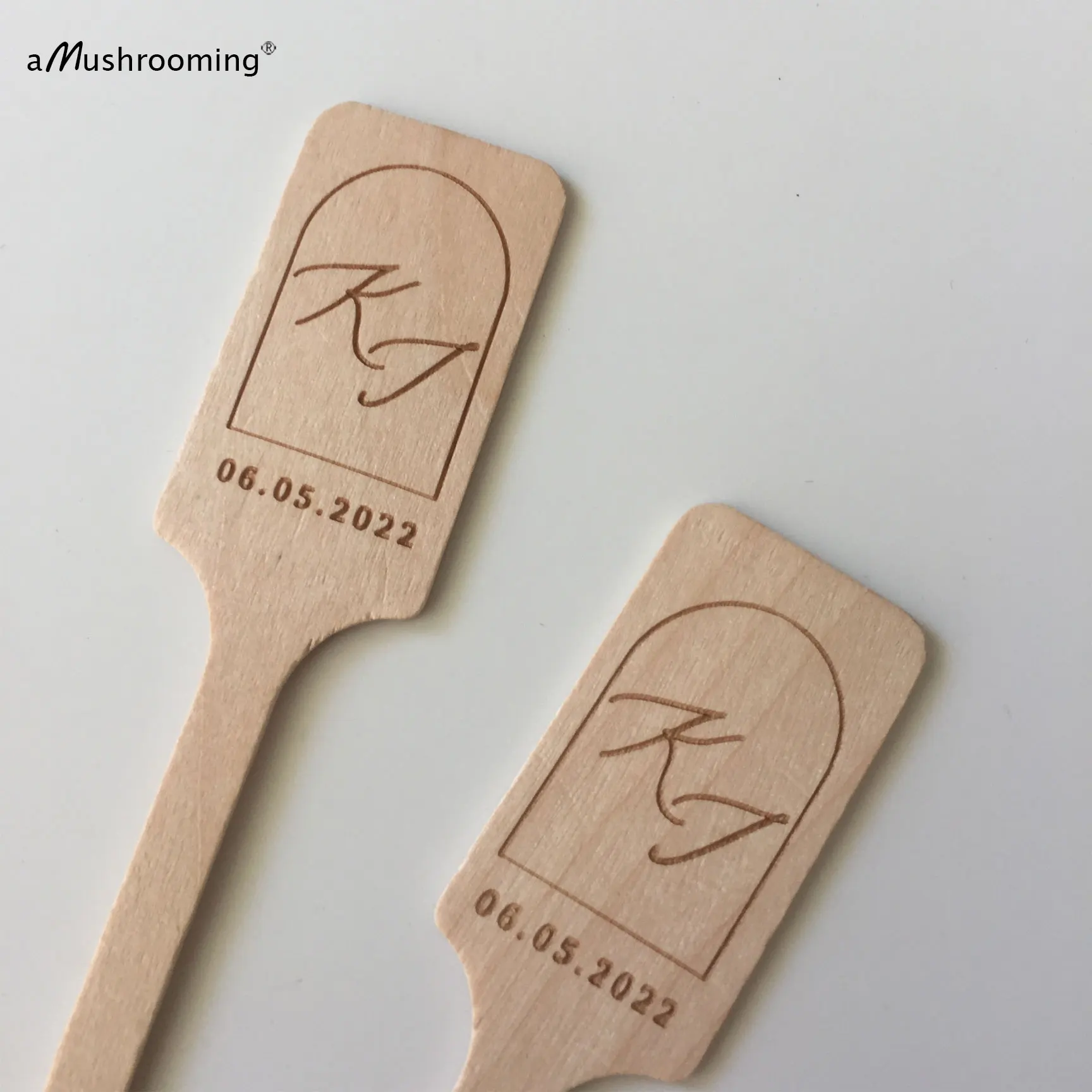 50/100 монограмма деревянные питьевые палочки деревенские Свадебные мешалки с инициалами и датой Коктейльные кружки украшения кофейные палочки