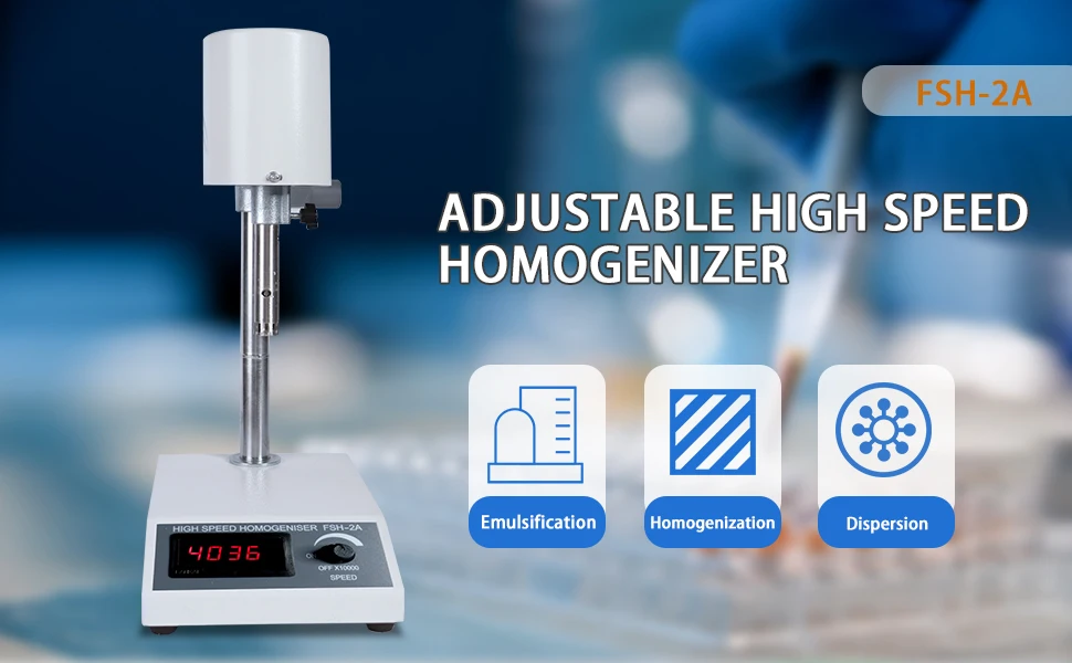Благодаря высокой скорости гомогенизации, гомогенизатор может помочь эмульгировать гомогенизацию между двумя несмываемыми жидкостями и эмульгировать микроорганические вещества в воде.