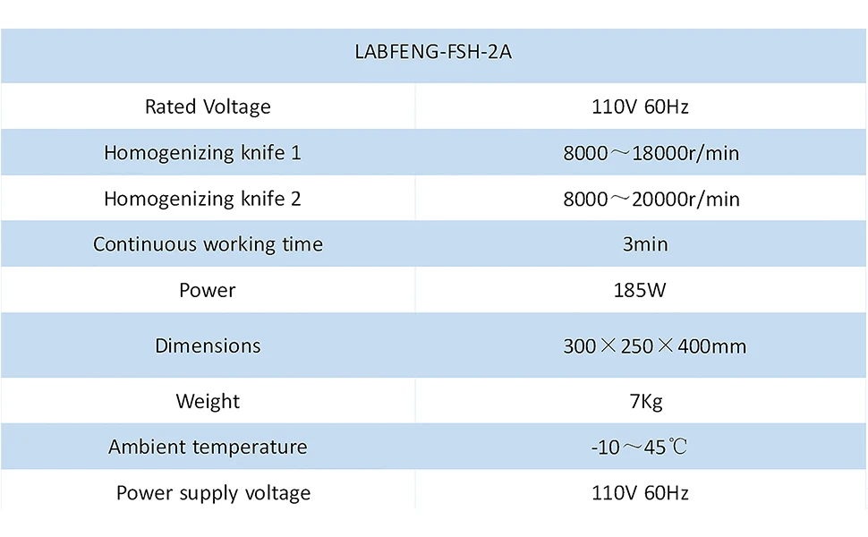 Параметры продукта: скорость двигателя: 22000р/мин однородный нож 1: 8000 ~ 18000р/мин однородный нож 2: 8000 ~ 20000р/мин
