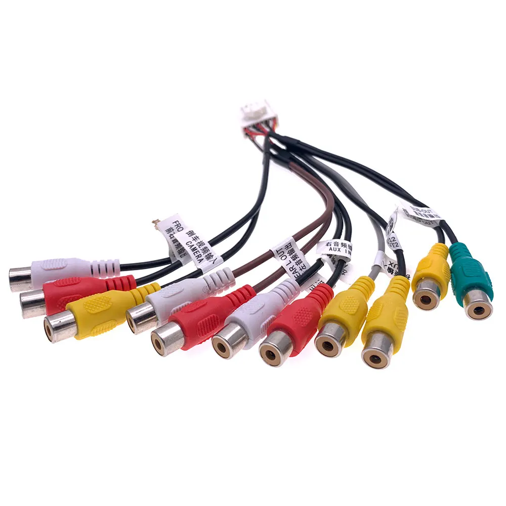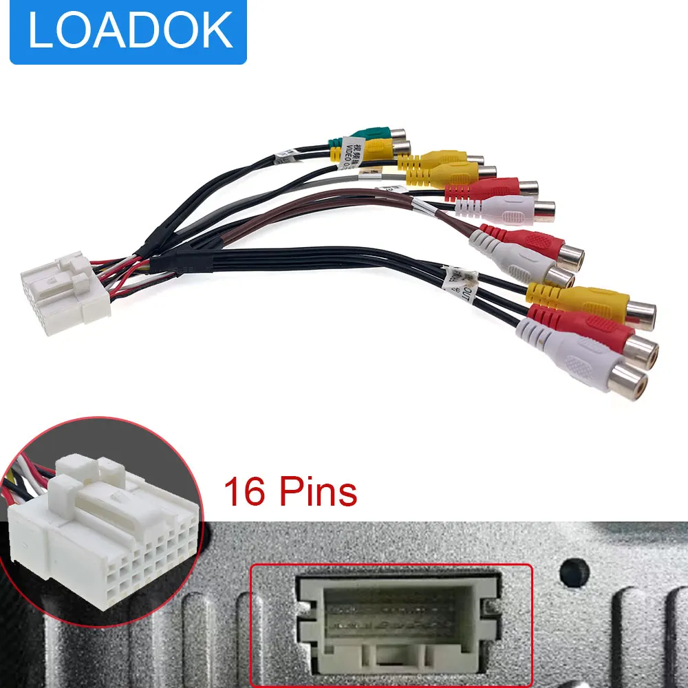 16 Pin автомобильная стереосистема радио 11 RCA с разъемом подачи внешнего сигнала Aux Видео вида сзади Камера в провод жгут проводов разъем адаптера кабеля андроид DVD