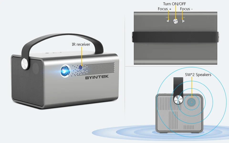 Уникальные преимущества BYINTEK R17 Pro1) Встроенный 15600 мАч литиевая батарея, время автономной работы составляет 1,5 ~ 2,5 часов. 2) реальное 3d-шокирующее ощущение для Blue Ray 3D 3) Встроенная умная последняя ОС Android 9,0 4) WiFi Дисплей Кино игра для смартфона/планшета/ПК 5) максимальная поддержка 4K фильма 6) поддерживает несколько языков: английский, русский, арабский, корейский, японский, французский, немецкий, итальянский, испанский, китайский, вьетнамский, польский, традиционный китайский и т. д. 0,45 дюймовая большая панель DMD, более высокая яркость и разрешение