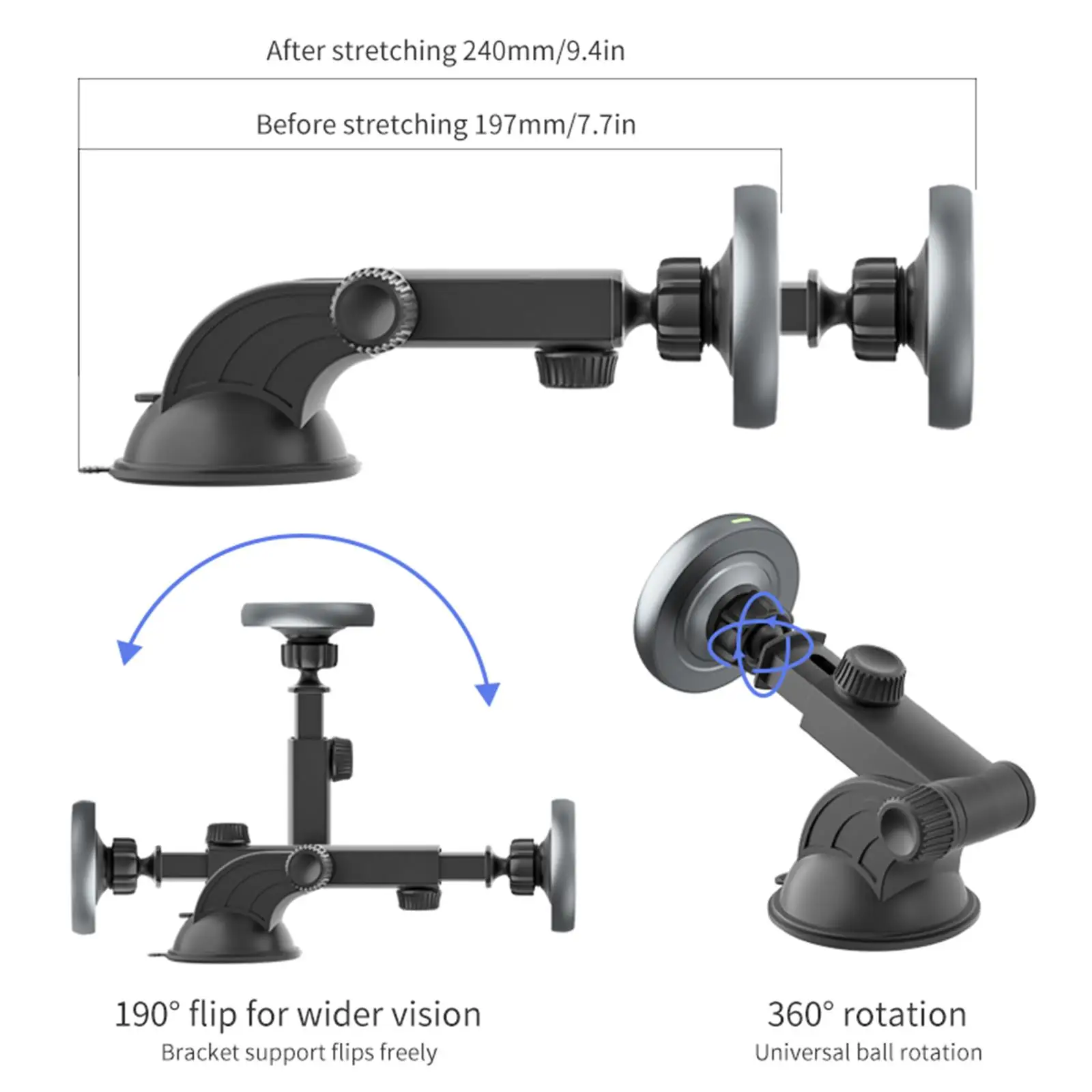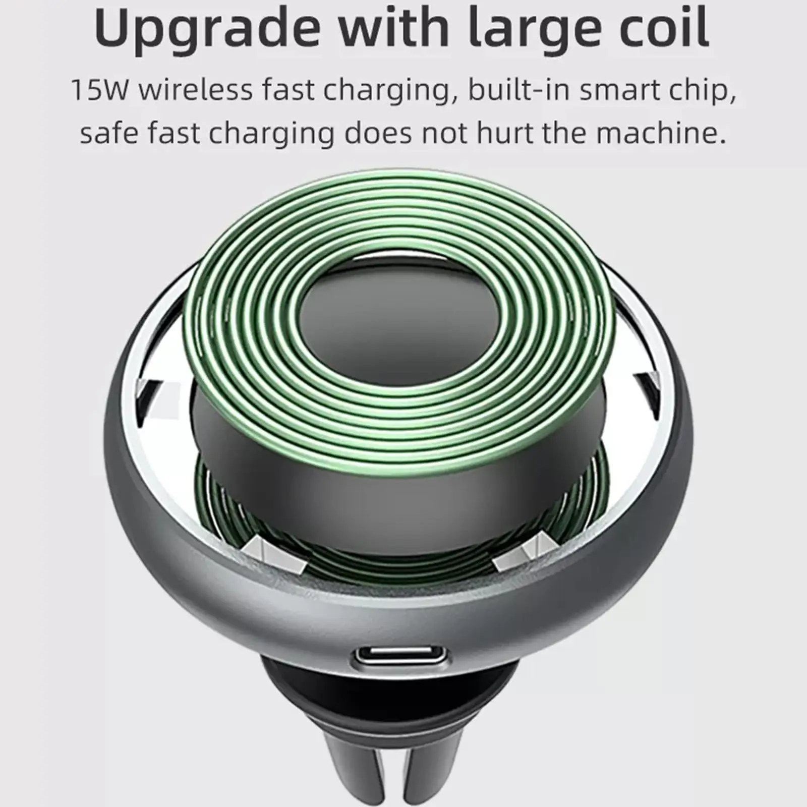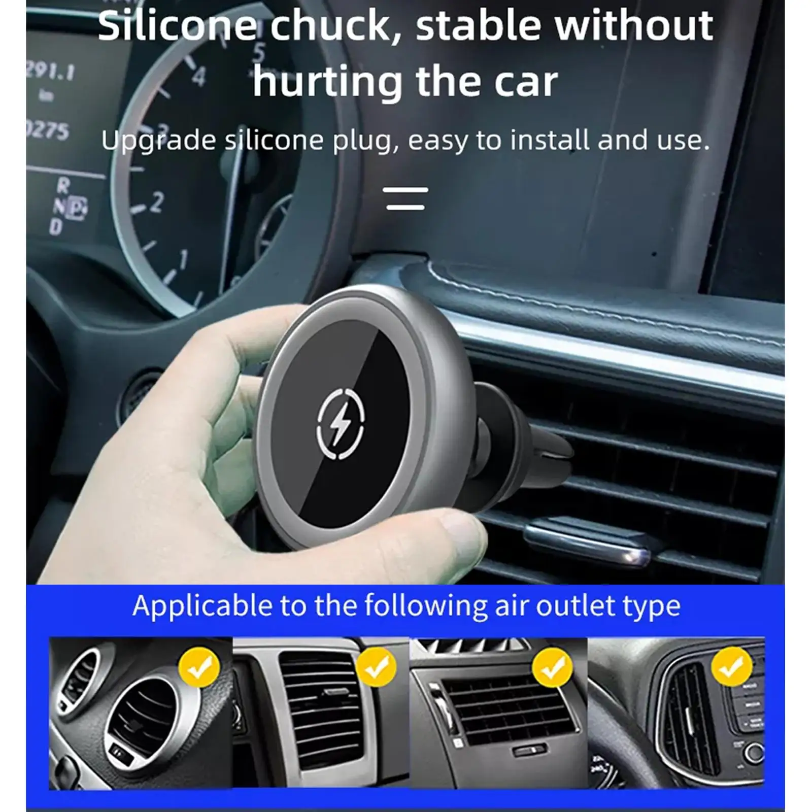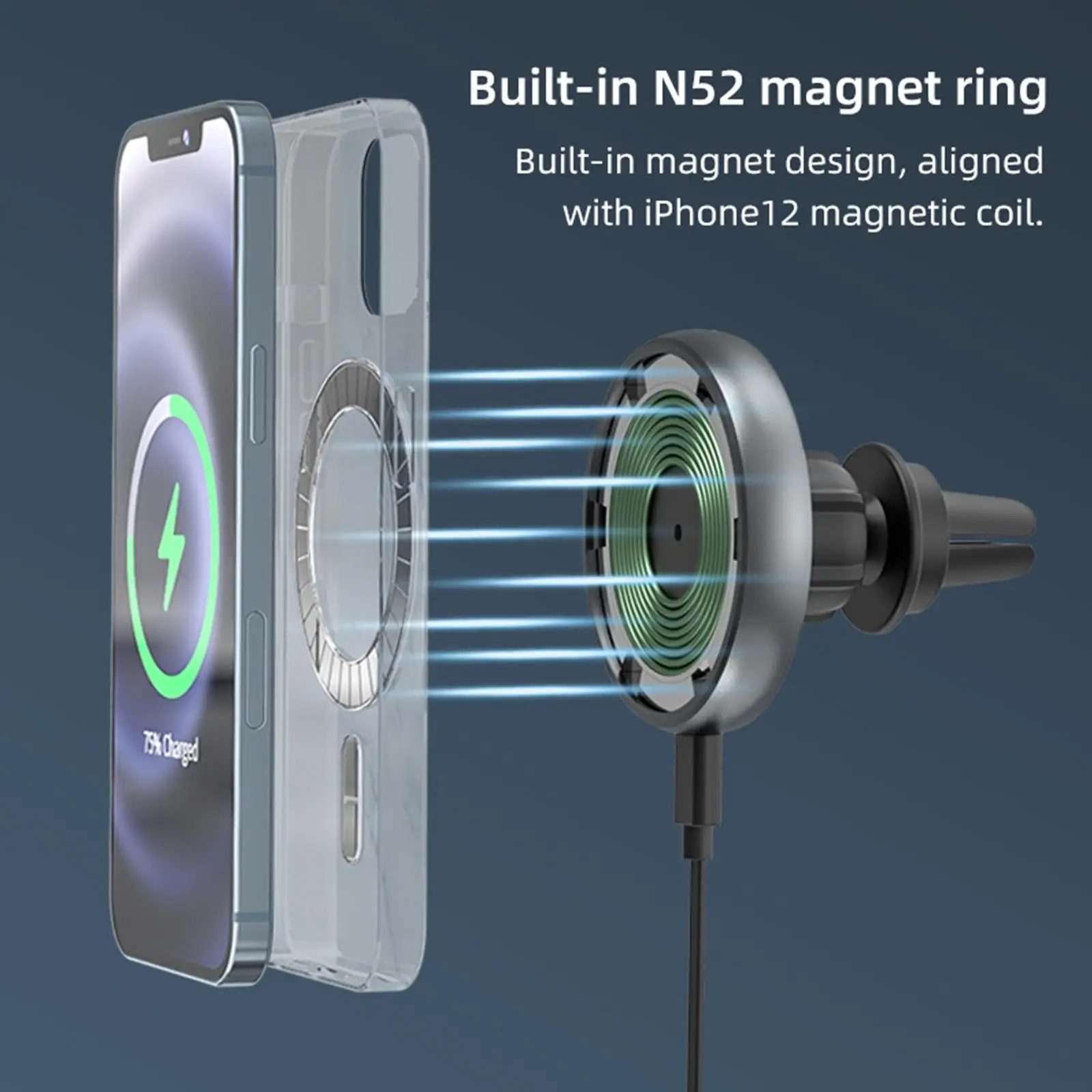 Магнитное позиционирование. Встроенный магнитный дизайн N52, выравнивание магнитной катушки iphone 12, поддержка быстрой беспроводной зарядки 15 Вт! Безопасная и быстрая зарядка не повредит двигатель.