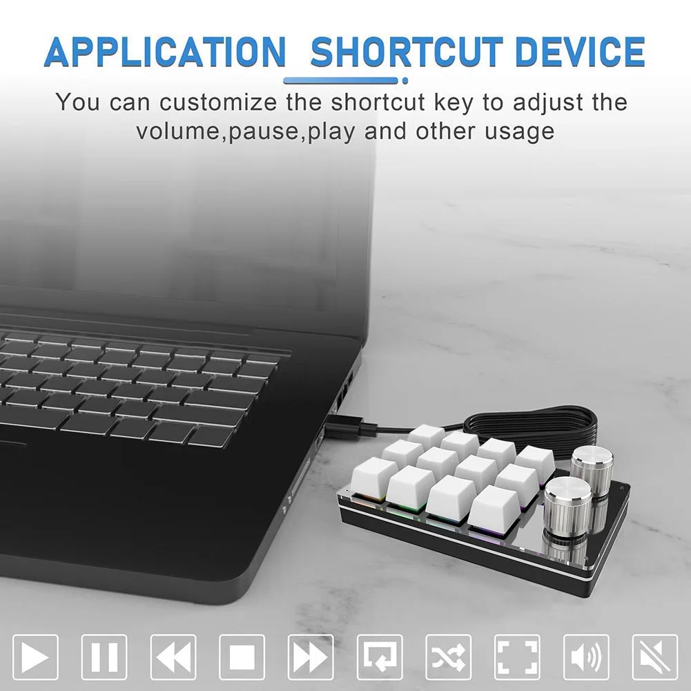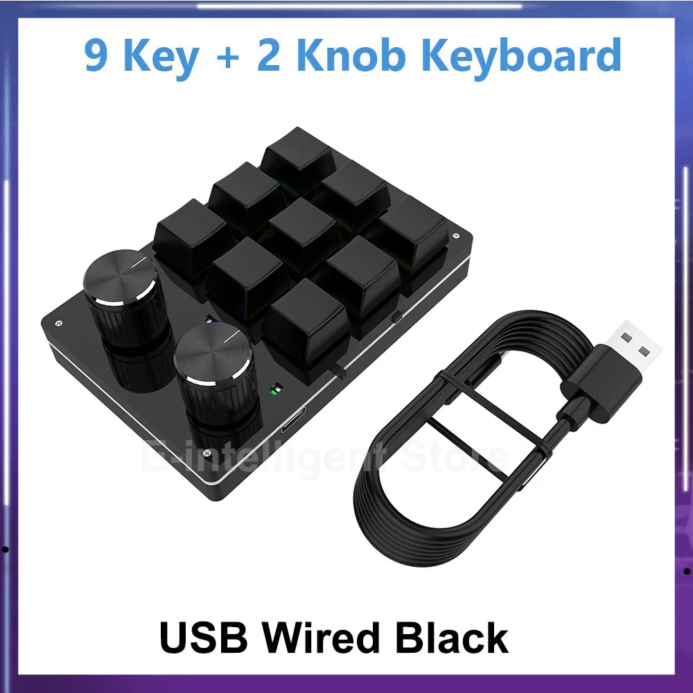 Функция ручки: ручка может устанавливать такие функции, как увеличение и уменьшение зума, Предыдущий трек, следующий трек, Увеличение громкости, уменьшение громкости, пауза, воспроизведение и т. д. Механическая макро-клавиатура с одной рукой проста в эксплуатации и удобна в переноске.