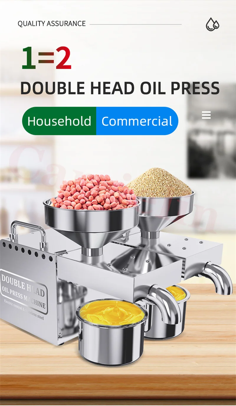 Двухголовочный пресс для масла 2 моторный аппарат для получения эфирных масел коммерческий холодный горячий дом из нержавеющей стали семена подсолнуха экстрактор оливкового масла B02