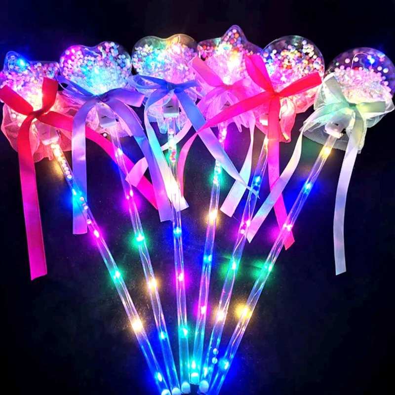 Забавная наружная светящаяся Ночная игрушка-палочка: волшебная палочка-палочка предлагает 4 дополнительных стиля, имеет различные элементы в верхней части хрустального шарика, звезды/бабочки/сердца любви/круглого шарика для вас на выбор, кнопка питания от батареи сверкающая и Ослепительная в ночное время, с супер привлекательным для детей, Кристально прозрачный шар и трубка отражают светильник, привнесите ваших маленьких детей в сказочный мир.