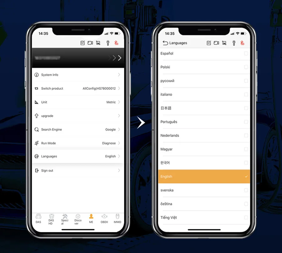 6. Нажмите кнопку My/Settings вашего устройства, чтобы соединить «NexzDAS» с вашим устройством;