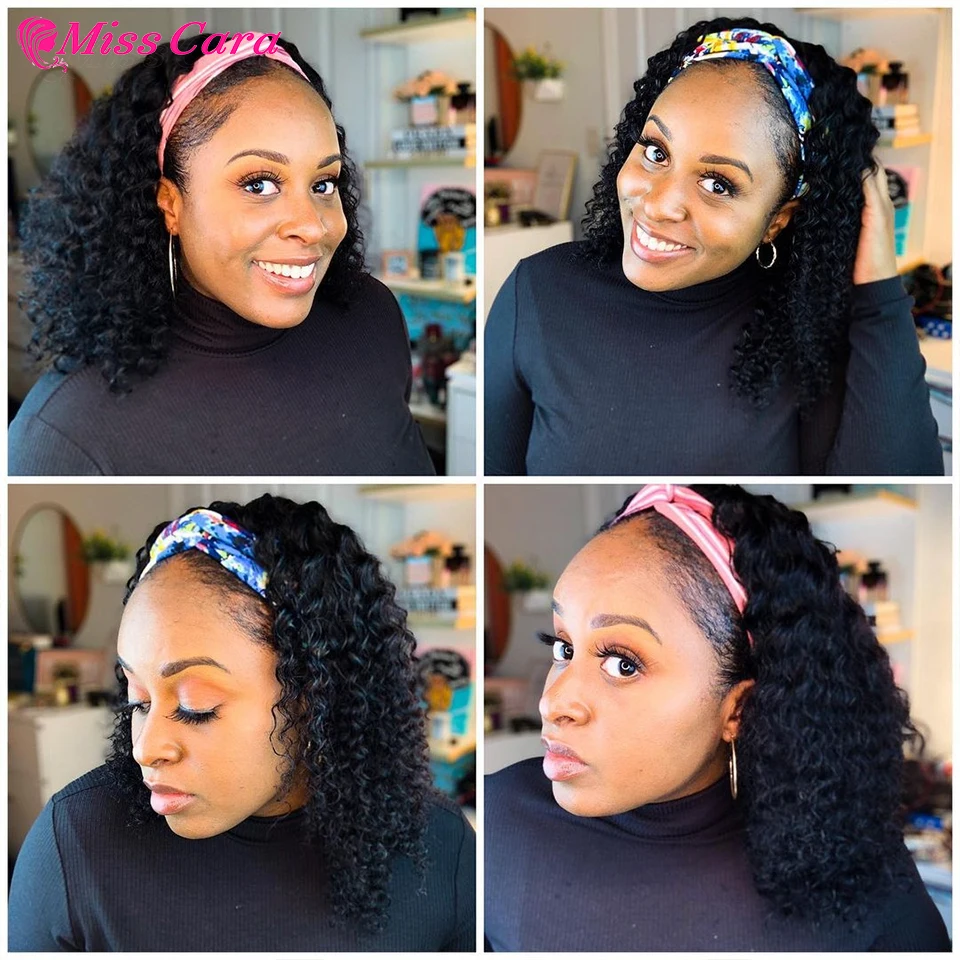 Кудрявый парик с головной повязкой, человеческие волосы 180%, полная машина, бразильские человеческие волосы Remy, парики для женщин, бесклеевые человеческие волосы, милый парик