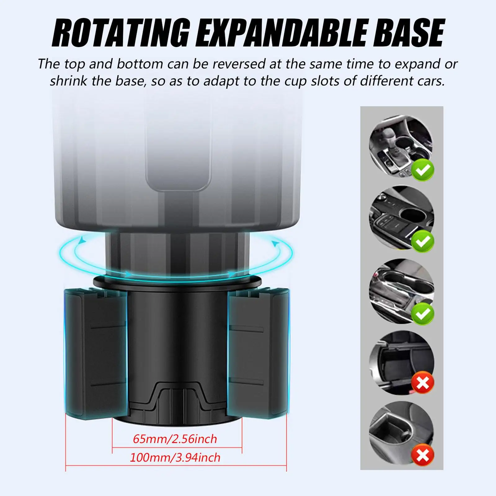 Обновите часть чашки адаптера до более прочного материала ABS. Для тех, кто имеет большие бутылки для воды и контейнеры, этот автомобильный держатель чашки отлично подходит для обеспечения их безопасности.