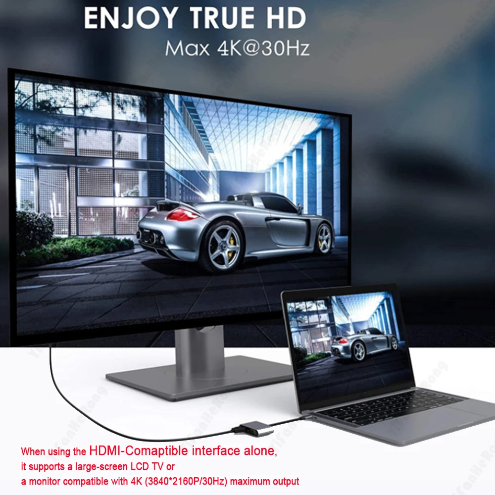 【Support 4K Max】USB C to HDMI-compatible VGA Adapter Supports video resolution up to (4K * 2K) at 3840 * 2160P / 30Hz. when use HDMI-compatible alone, It support a large screen liquid crystal TV or display compatible with 4K max output.