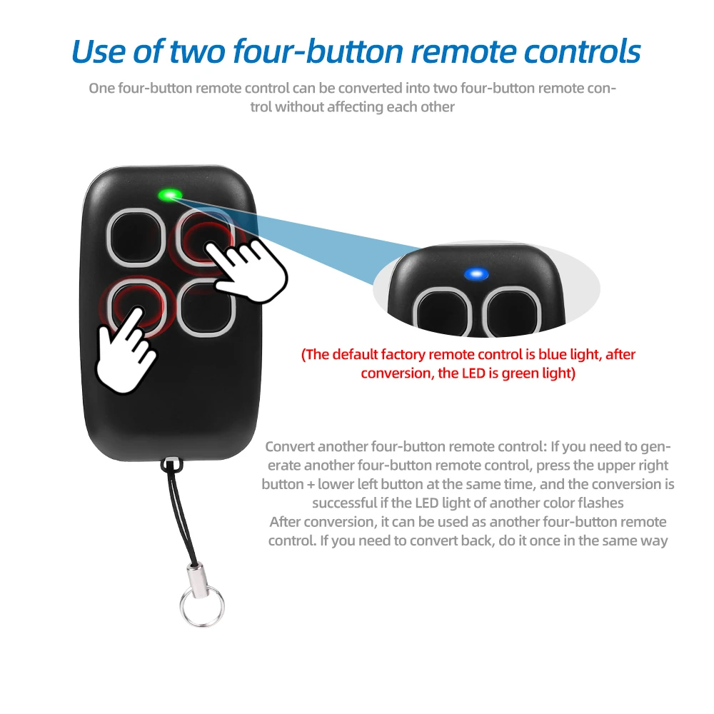 4. Один четырехкнопочный пульт дистанционного управления может быть преобразован в два четырехкнопочного пульта дистанционного управления, не влияя друг на друга