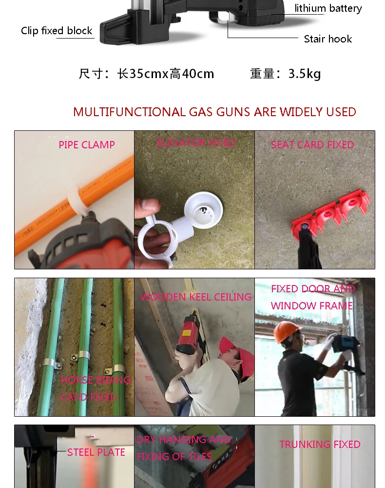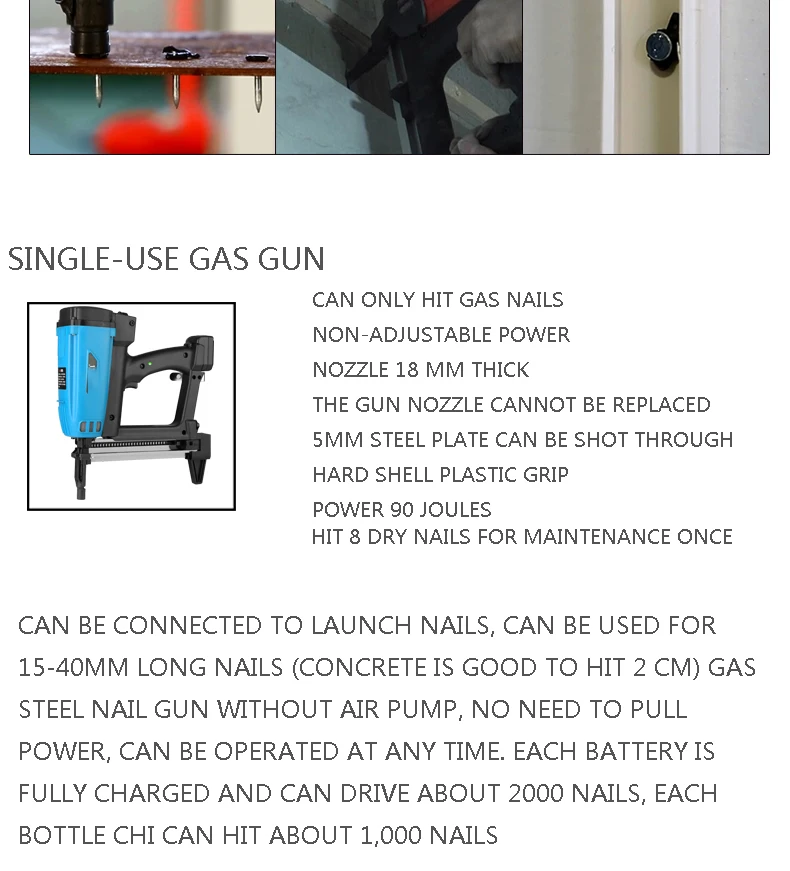 WSQ-01 перезаряжаемый одноразовый газовый гвоздильный пистолет, бетонная потолочная рама для багажника, гидромощный деревообрабатывающий стальной гвоздь