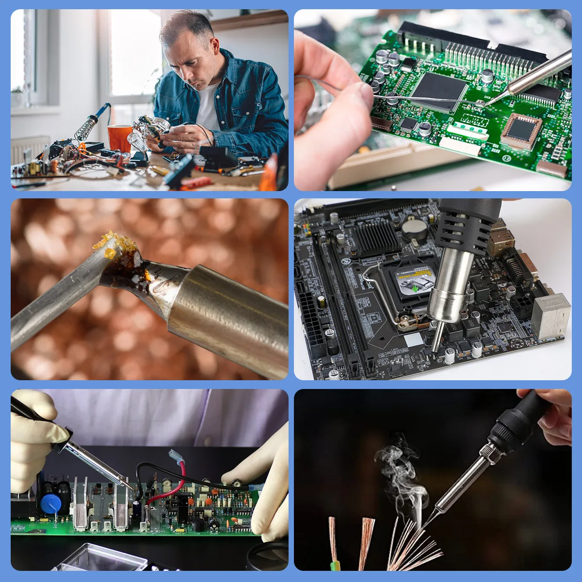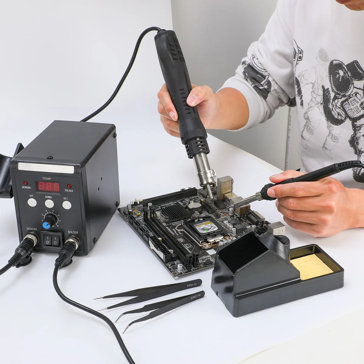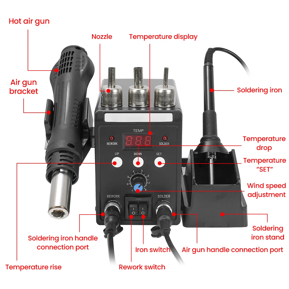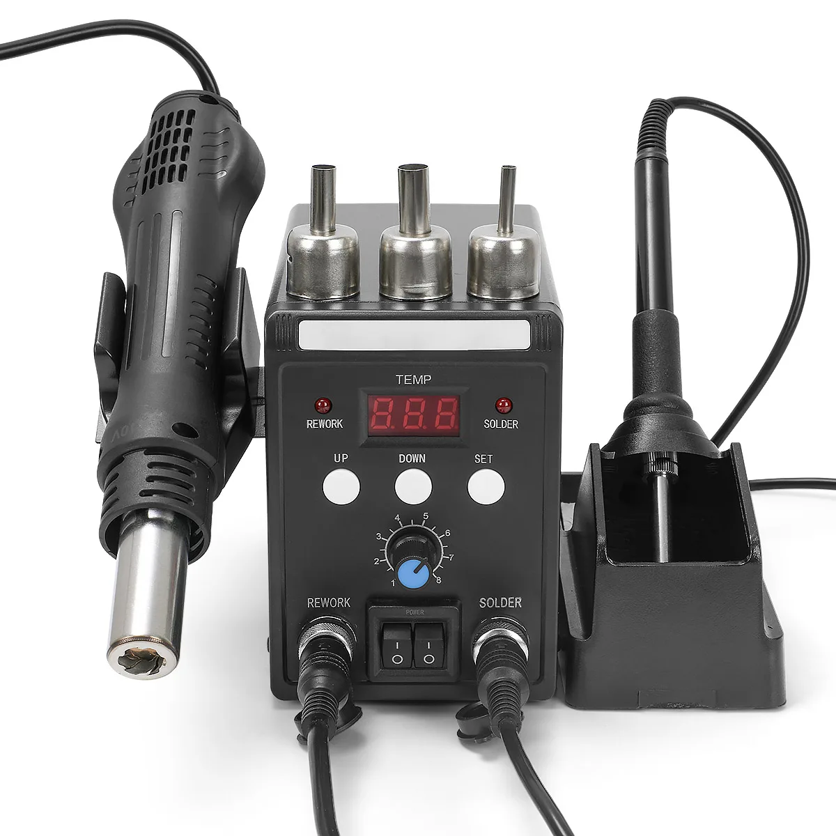 Паяльная станция 2в1 с горячим воздухом и горячим утюгом;