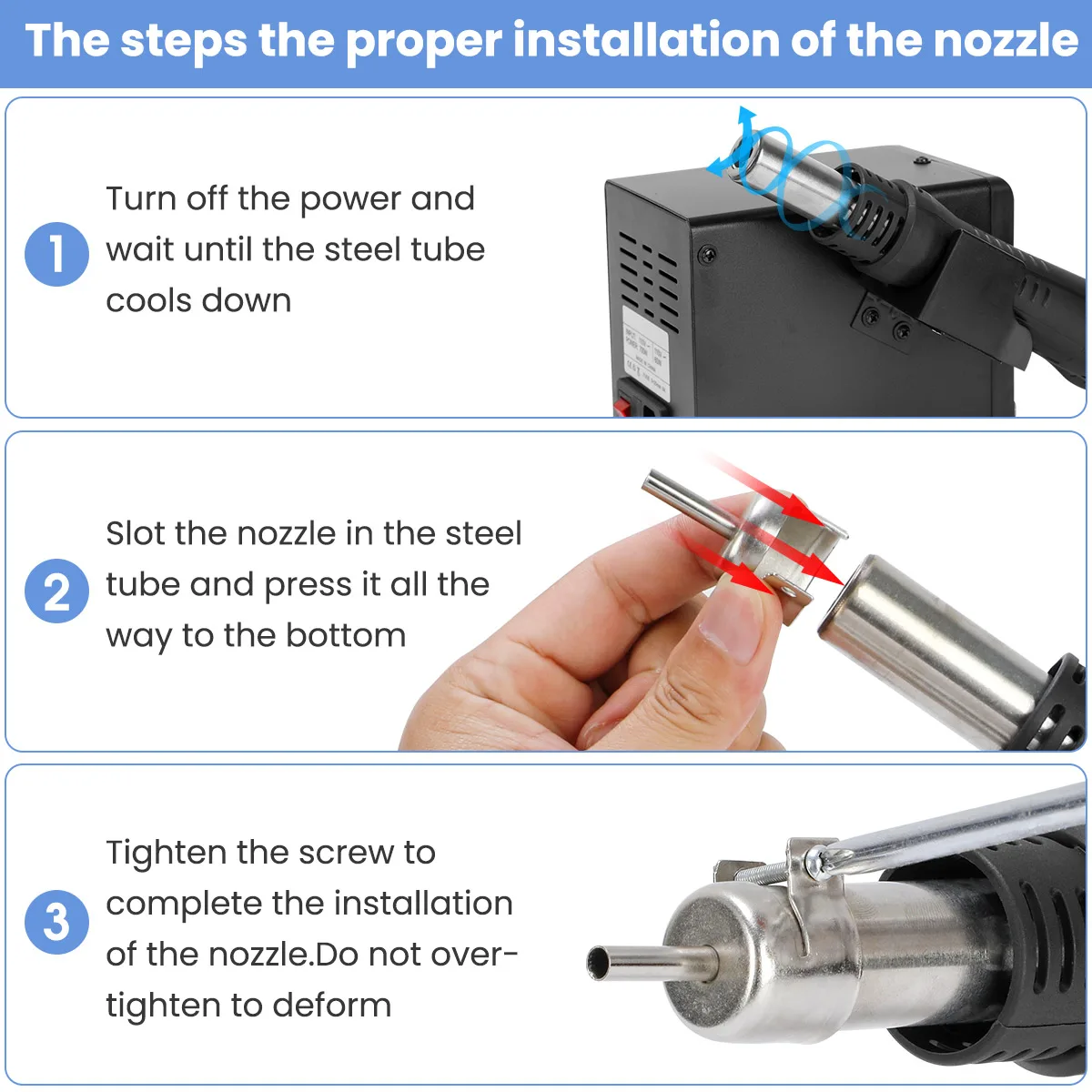 · Подходит для термоусадочной, сушки, удаления лака, удаления вязкости, обледенения, предварительного нагрева и пайки клея;