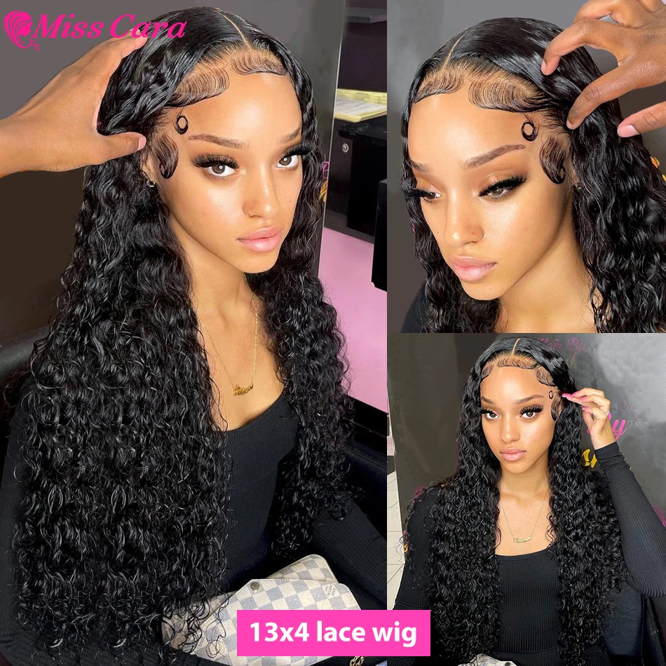 Водная волна Синтетические волосы на кружеве парик 13x 4 Синтетические волосы на кружеве al парики из натуральных волос для Для женщин индийские Предварительно Связанные в пучки человеческие кружева закрытие парик глубокая волна волос вдоль линии волос