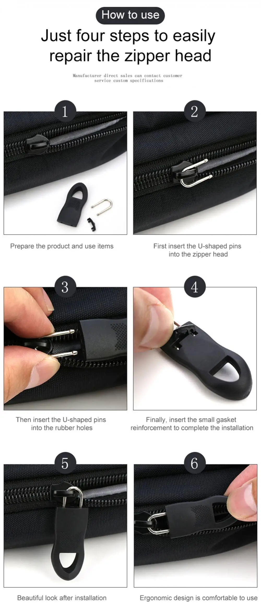 1. 【Легко отремонтировать головку молнии 】Только четыре шага, без каких-либо инструментов для помощи, легко сохранить вашу молнию, высокое значение, после установки молния изысканная, молния дизайн головы эргономичный, удобный в использовании
