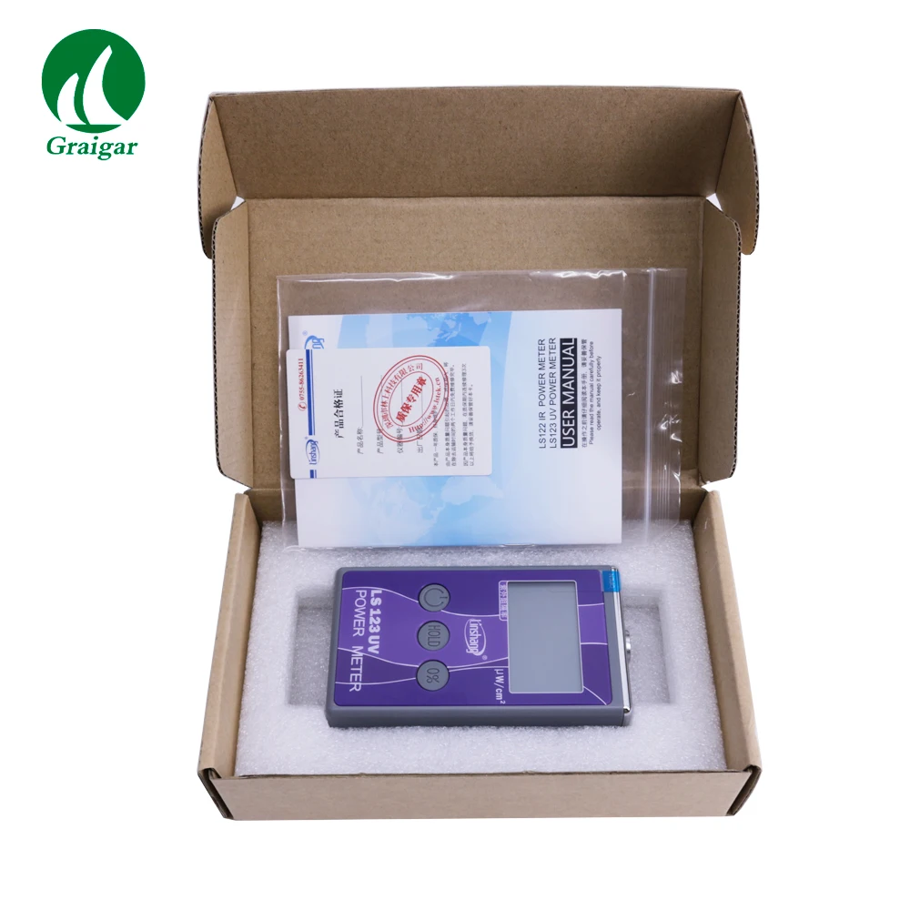 Измеритель мощности УФ-излучения LS123-это прибор для измерения мощности УФ-излучения, который используется для измерения яркости УФ-излучения. Его единица-микро ватт на квадратный счетчик (uW/m2.). Прибор также используется для измерения УФ-излучения.