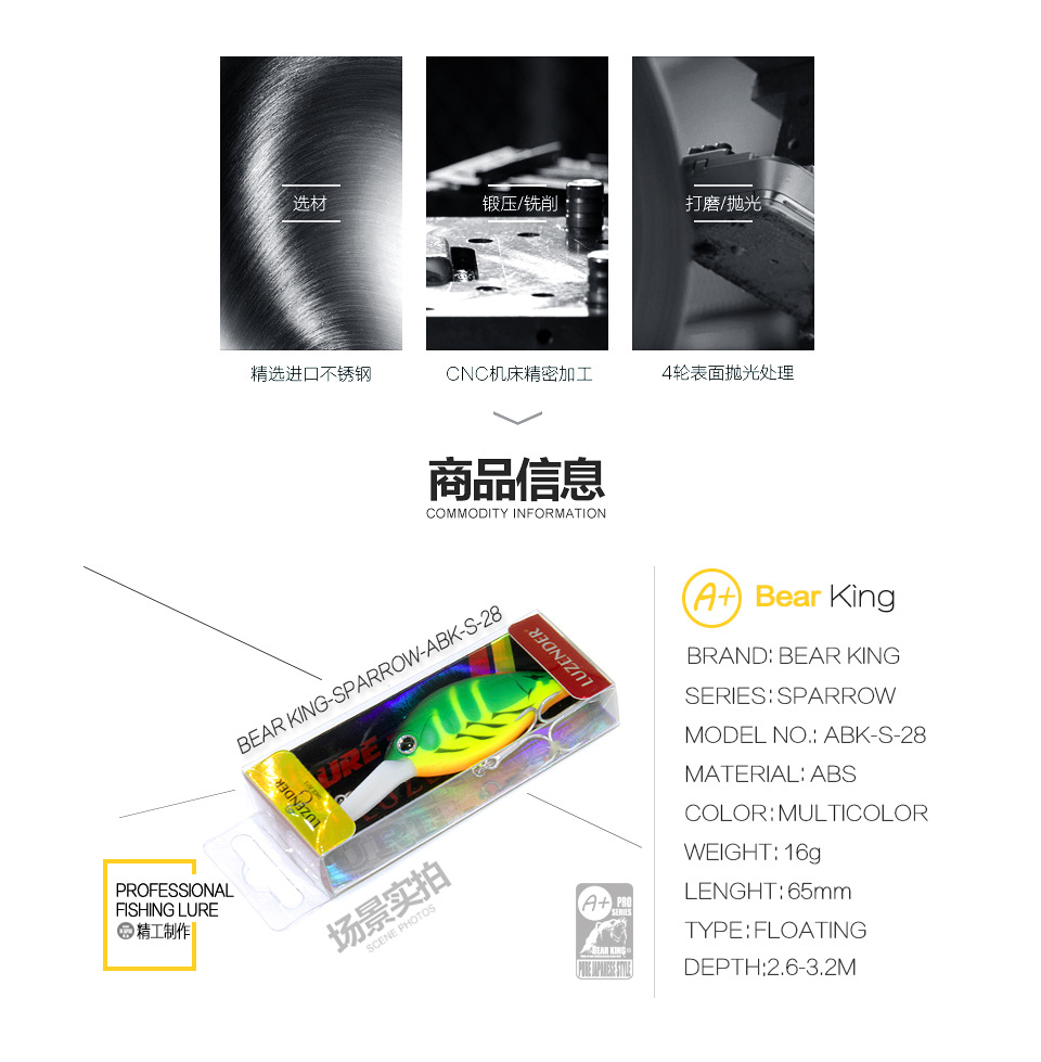 Bearking 5 шт./лот, профессиональная рыболовная приманка разных цветов в каждой партии, рукоятка 65 мм и 16 г, погружение 2,5-3,2 м, бесплатная доставка