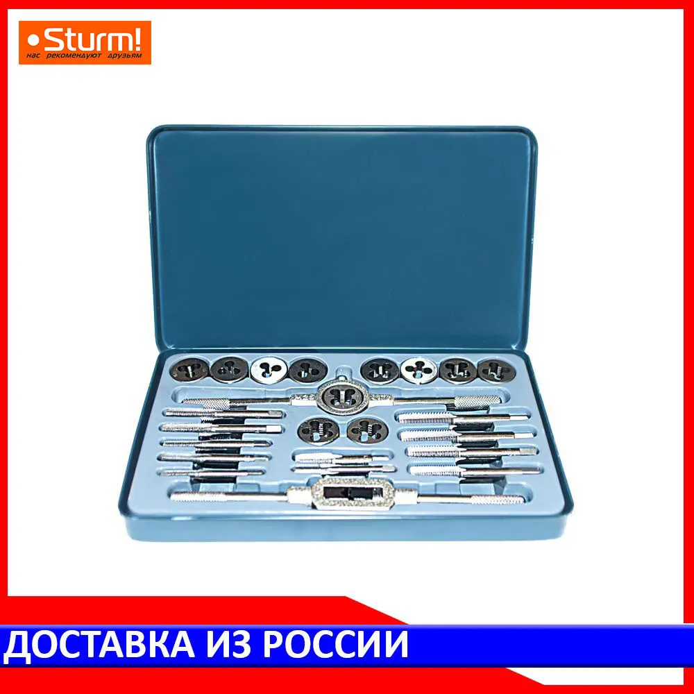 Подробное описание.Дополнительные характеристики: Твердость 57-63 HRC; Удобный металлический кейс; Комплектация: В комплекте 24 предмета: Кейс: 1 шт. Плашкодержатель: 1 шт. Метчикодержатель: 1 шт. Плашки: 1/8 NPT27, M5x0.8, M6x0.75, M8x1, M10x1.25, M12x1.5, M5x0.9, M6x1, M8x1.25, M10x1.5, M12x1.75 Метчики: M5x0.8, M6x0.75, M8x1, M10x1.25, M12x1.5, M5x0.9, M6x1, M8x1.25, M10x1.5, M12x1.75 Материал: хромованадиевая сталь Вид упаковки: металлический кейс Назначение: для нарезания вручную метрической резьбы Преимущества товара: Строгий контроль качества на всех этапах производства резьбонарезных инструментов, входящих в набор, позволяет получить максимально качественный результат при выполнении любых задач по нарезанию резьбы. Оптимально подобранный состав набора для решения большинства задач по нарезке как внешней, так и внутренней резьбы. Воротки для метчиков и плашкодержатели входят в состав набора. Применение хромованадиевой стали и закалка режущей части до 57-63 HRC обеспечивает повышенный ресурс и точность резьбы. Удобный металлический кейс позволяет защитить инструмент от случайного повреждения и обеспечивает его бережное и аккуратное хранение.Включает метчики и плашки для нарезания популярных размеров метрических резьб. Укомплектован воротками для метчиков и плашек.