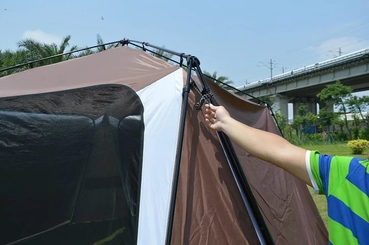 Когда есть ветер или сильный ветер, вы должны вытянуть ветряную веревку, чтобы предотвратить ветер.