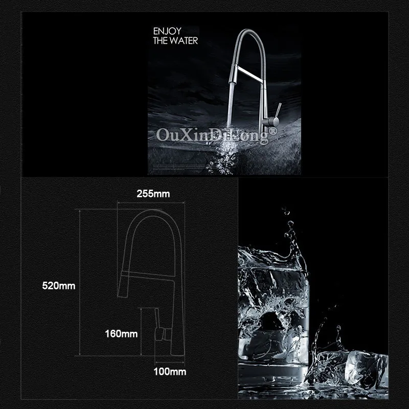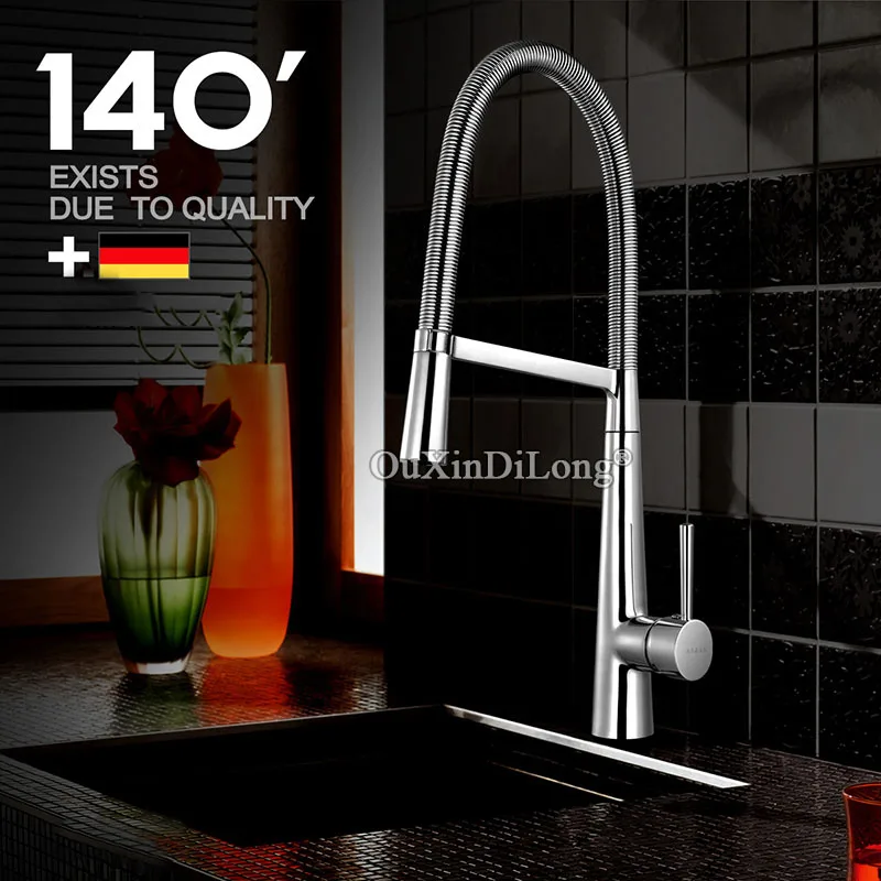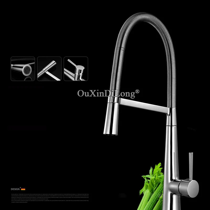 High Quality Copper Sink Mixer Chrome Finish Spring Kitchen Faucet Swivel Spout Hot Cold Water Control KF237