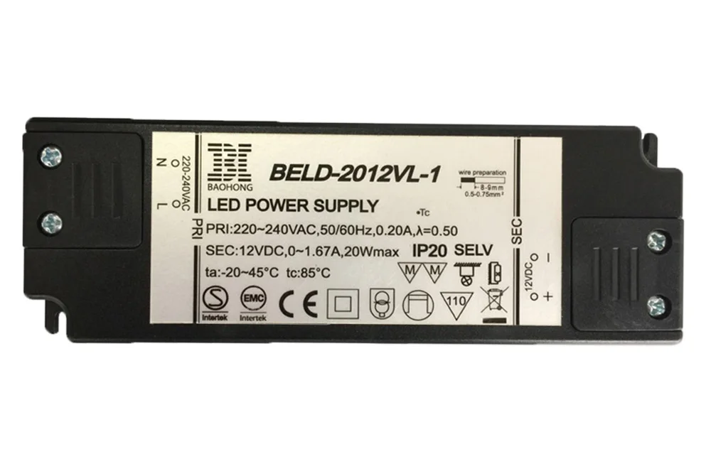 1.BELD-2012VL-1 : 20 Вт 12 В постоянного тока постоянное напряжение (Вход: 220-240 В) супер тонкий светодиодный драйвер