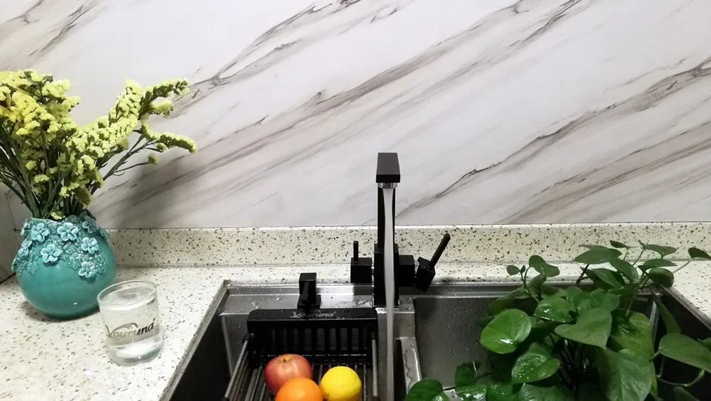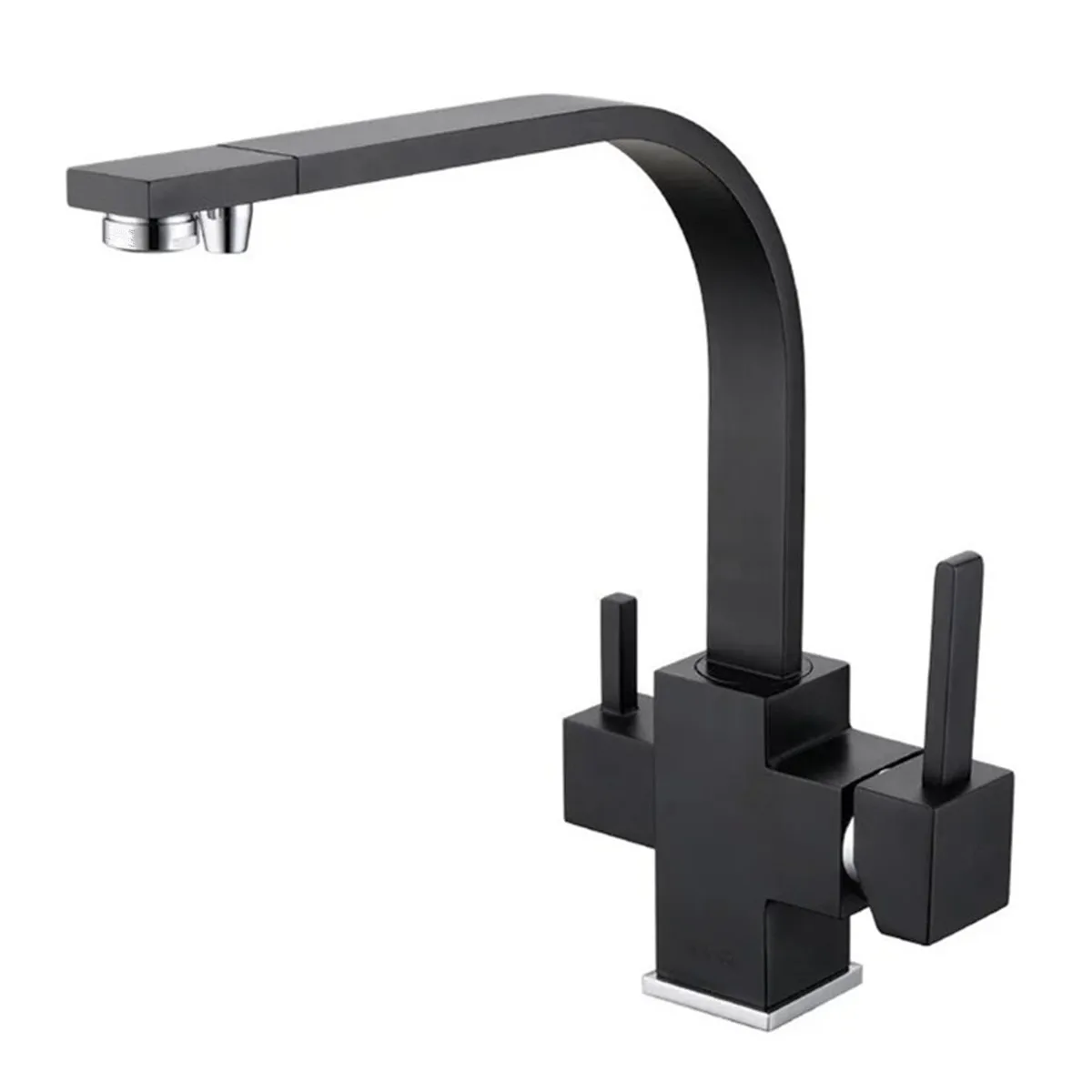 Роскошная квадратная Стиль матовый черный Кухня кран Longreach Смеситель для мойки 3 Way фильтр для воды коснитесь