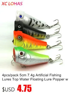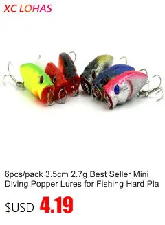 Item: Isca Artificial Big Mouth Popper Fishing Lures Hard Plastic 3D Fish Eye Swimbait Top Water Floating Poper Lure Bait Size: 5cm 4.9g Approximately. Type: Hard plastic with 3 hooks * 2 . Hook size: 8# Diving Depth: Top Water Floating. Fit for: Sea Boat Fishing, Boat Fishing, Ice Fishing, River Lake Fishing Lure. Target Fish: Black Fish, Bass, Pomfret, Tilapia, Bream, Dace, Carp Fishes Features: 1. Lifelike 3D fish Eye Vivid type Swimbait, Very attractive to Fishes. High successful rate of Fishing,Especially good for Sea Beach Fishing. 2. Strong Quality, Durable Usage, No need to Change the lure time by time. 3. Clean and merciful design, No need to dirt your hands to kill the small animal worms. 4. Two hooks set attached, VMC Type with Barb, Once the fish bite the lure, it can never escape anymore. Especially Good for catching Big Sea fishes. Popper Lure Fishing Skill Tips: 1. Pull the Fishing Lure on the Water Surface to Simulate an Rattled Fish Trying to Escape from Big Fishes' Hunting. Different Pulling Speed can Produce Different Water Spray, It will Easily Attract Attention of Target Fishes, and Lure them Bite the Hook. 2. Highly Suggested to Use the Popper Lures in the Early Morning, Especially when the Water is Muddy and not Clear.Payment