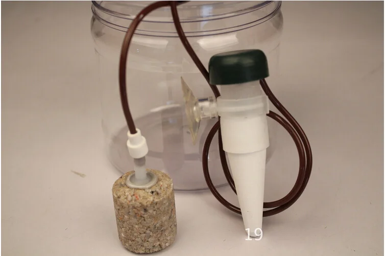 Затем поместите головку шланга в воду для наполнения водопроводной водой, установив обратно. Затем шланг с другой стороны положить в бутылку для хранения, Всасывание воды на краю головки цилиндра.