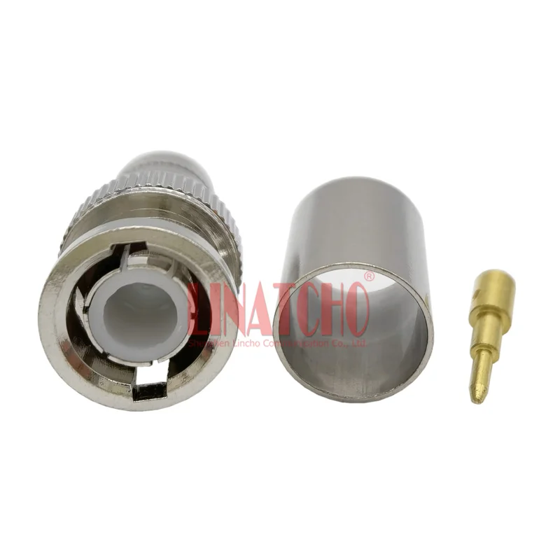 BNC Мужской коаксиальный разъем имеет ptfe прибор для тестирования диэлектрической тип и КСВ 1,5. Коаксиальный разъем BNC имеет корпус из латуни с никелированным покрытием. Наш соединитель BNC использует латунный контакт. Этот коаксиальный радиочастотный соединитель BNC Соответствует RoHS и REACH.