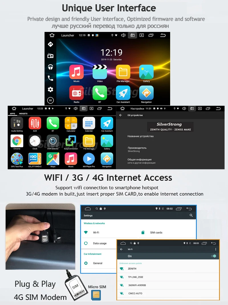 4. Встроенный WiFi модуль и поддержка 4G донгл с wifi роутером (4G модем доступен на четырехъядерный модели)