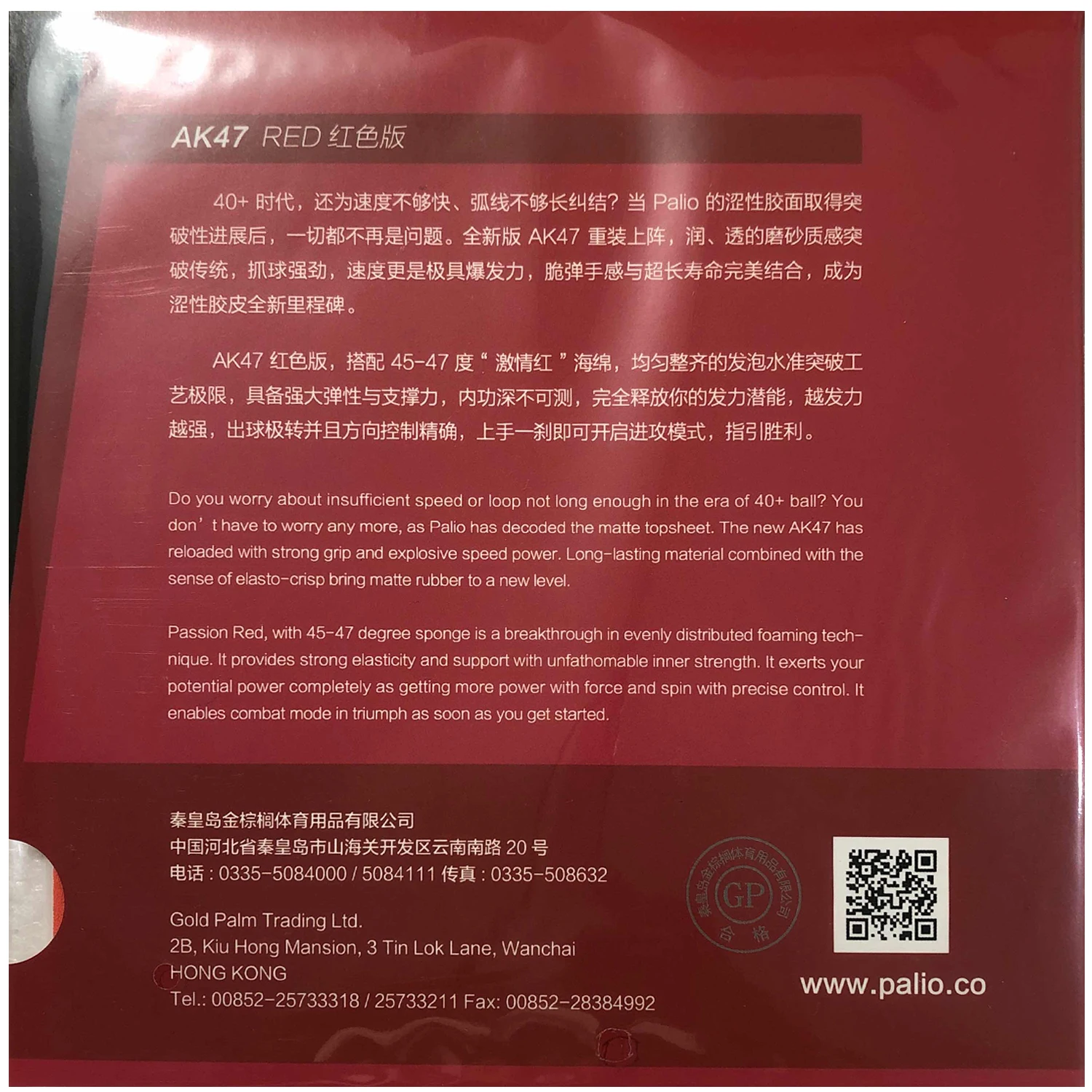 Каучук: 2x Palio "AK47 RED" (матовый) 45-47 ° Pips-in резина для настольного тенниса с губкой