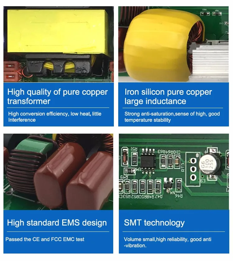 1. Все инверторы являются настоящими синусоидальными волнами 2, инвертор 12VDC вход-220VAC выход; Частота 50HZ 3, все инверторы с ЖК-дисплеем с входным напряжением и выходным напряжением 4, инвертор должен быть подключен, чтобы быть положительным и отрицательным.
