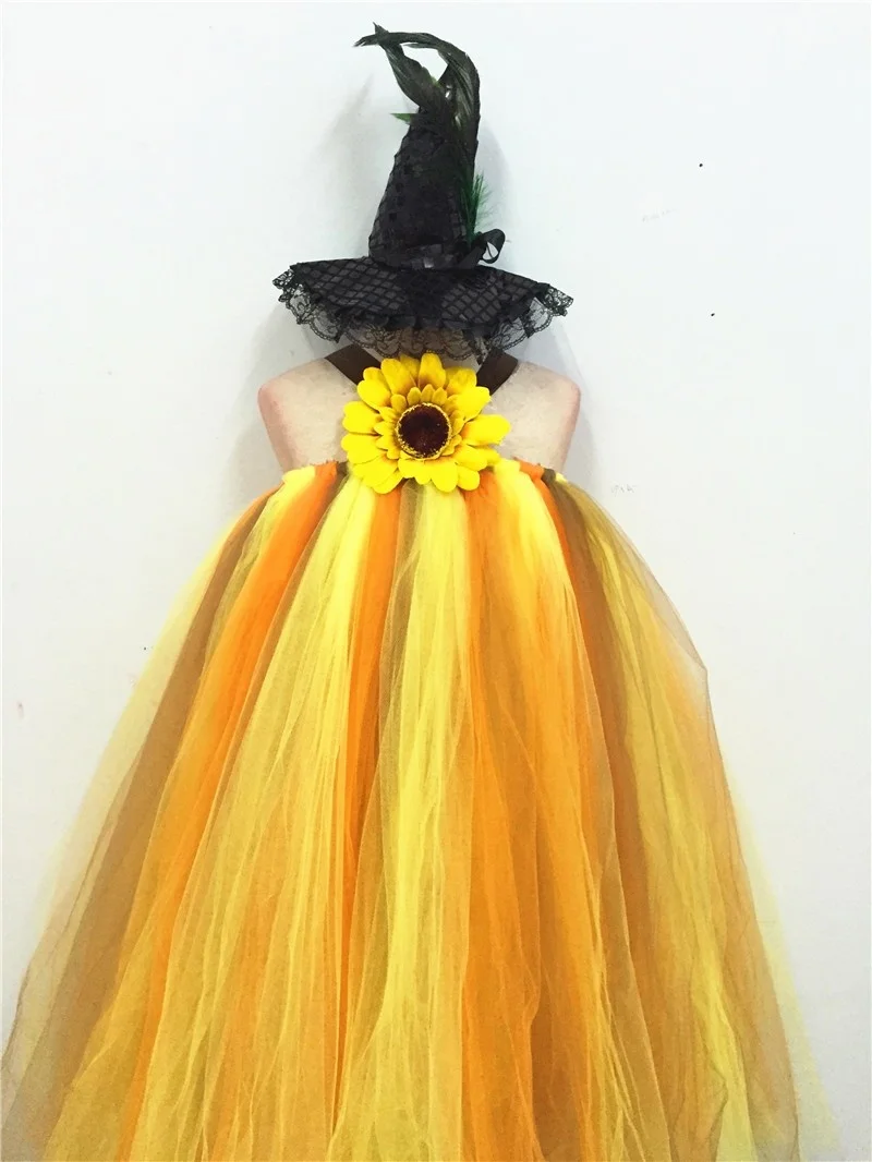 Чучело, платье на Хэллоуин для девочек, платье-пачка из тюля с Тыквой и подсолнухами, Детские вечерние карнавальные костюмы на Хэллоуин, Детские бальные платья