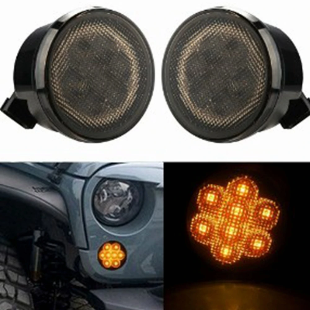 Бесплатная доставка, 1 пара, черный светодиодный фонарь для переднего крыла, указатель поворота, светильник светодиодный, боковой габаритный фонарь для Jeeps Wrangler JK 2007 ~ 2015, янтарный