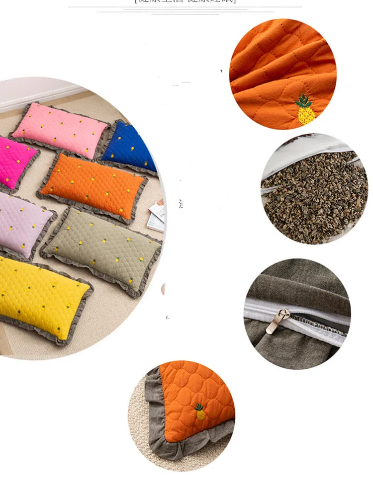 Вышитая ананас подушка для шеи 30*50 см 100% хлопок заполнены подушки с гречневой крупой для взрослых детей текстильный Декор для дома желтый синий цвет