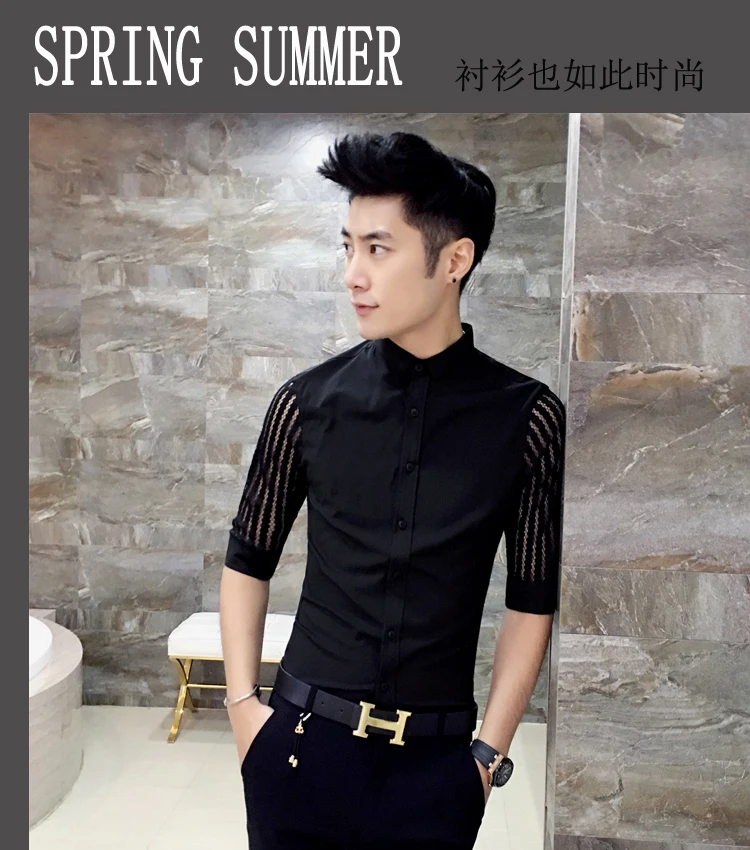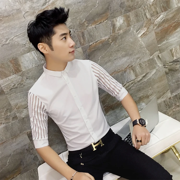 Мужская прозрачная рубашка, черная, белая, для выпускного вечера, Мужская кружевная рубашка, модная, дизайнерская, облегающая, Camisa Social Masculina