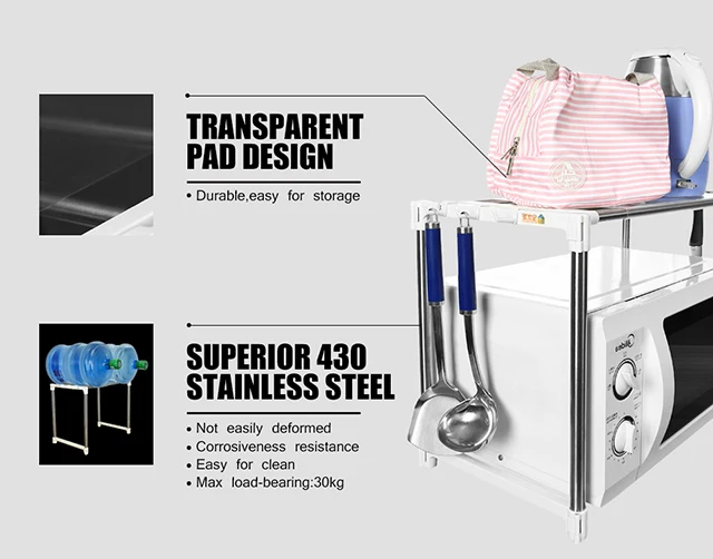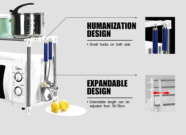 DQ-0826-C изготовлен из высококачественной нержавеющей стали, прочный и модный дизайн, который подходит для вашей современной кухни. Дизайн «сделай сам», простая установка. Сделайте ваш счетчик более аккуратным и чистым. Шесть маленьких крючков сбоку позволяют удобно повесить некоторые инструменты для приготовления пищи. Практичный, хранилище, идеально подходит для микроволновой печи и других кухонных приборов! Размер регулируется и снимается, экономит место, когда вы не используете их.
