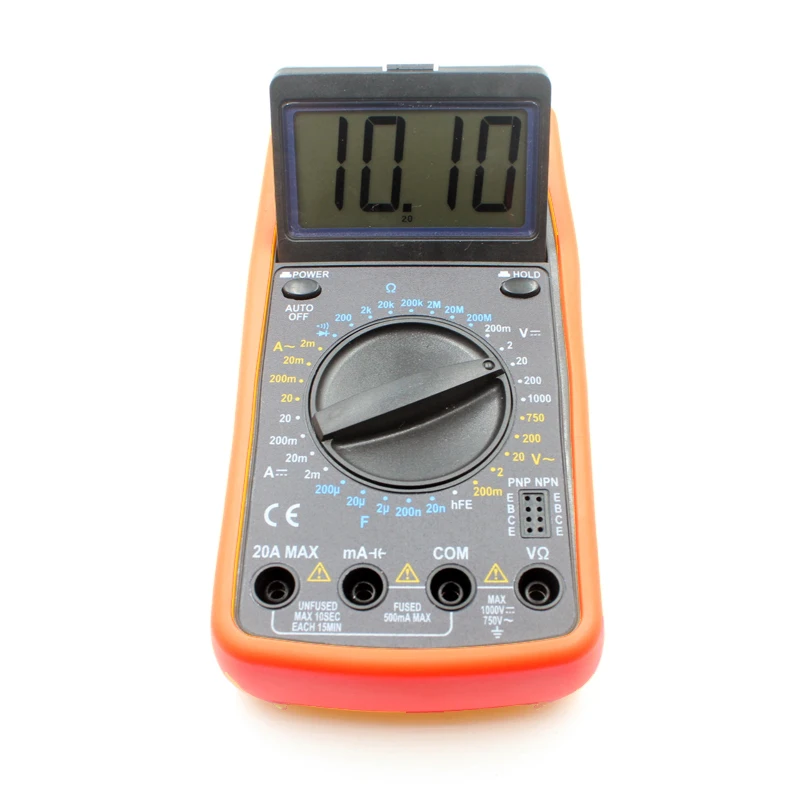 Регулируемый уголБольшой экран, легко читается Полная защита от ожогов Функция удержания данных для удобного чтения после измерения С ПВХ противоударный чехол С двойным предохранителем, безопасным и надежным Технология ОсобенностиDCV: 200m-2-20-200-1000V ± 0.5% ACV: 200m-2-20-200-750V ± 1.0% DCA: 2m-20m-200m-20A ± 1.8% ACA: 2m-20m-200m-20A ± 2.0% Ом: 0,25 ± 1.0% Крышка: 20n-200n-2u-20u-200uF ± 4.0% Общее описание3,5 цифры ЖК-дисплей, максимальный дисплей 1999 С низким уровнем Напряжение Дисплей Тестирование диодов: отображение приблизительного напряжения Защита от перегрузки: Да Audion тестирования: Да Непрерывный звуковой сигнал: Да Автоматическое выключение питания: Да Бесконтактная проверка напряжения переменного тока: есть хранение данных Мощность питания: 6F22 9В батареи Размер изделия: 190 × 90 × 33 мм Вес изделия: около 290 г Стандартные аксессуары: счетчик (без батареи), кобура, Подарочная коробка, Тестовые провода, руководство