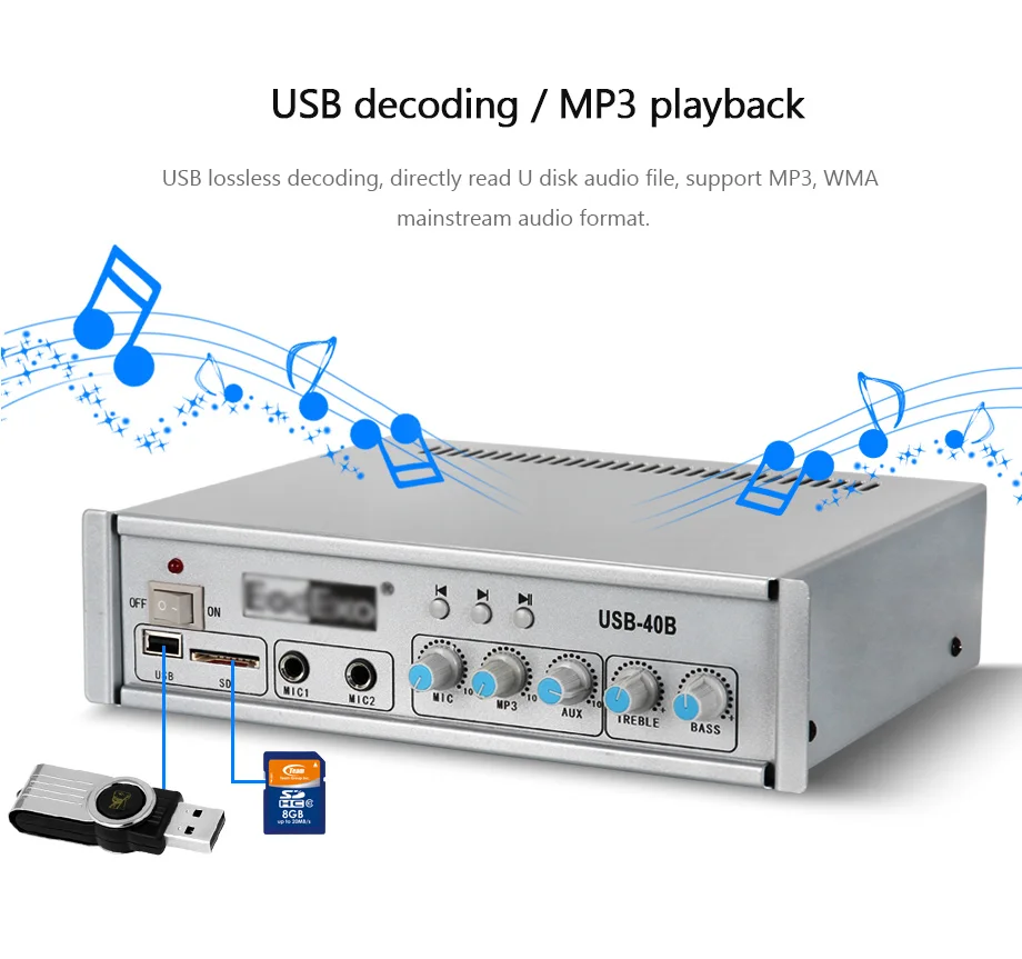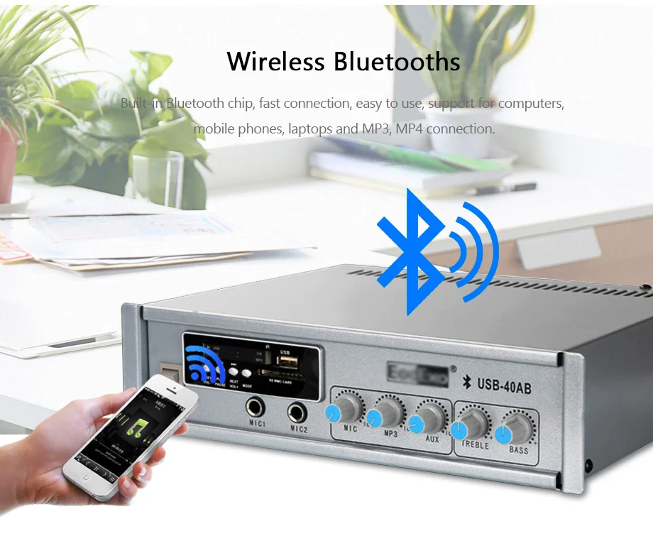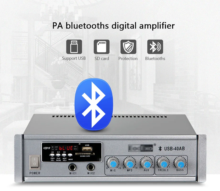 Система PA домашняя фоновая музыкальная система звуковая система аудио мини усилитель с bluetooth/FM/USB/sd-картой/2-полосным входом микрофона