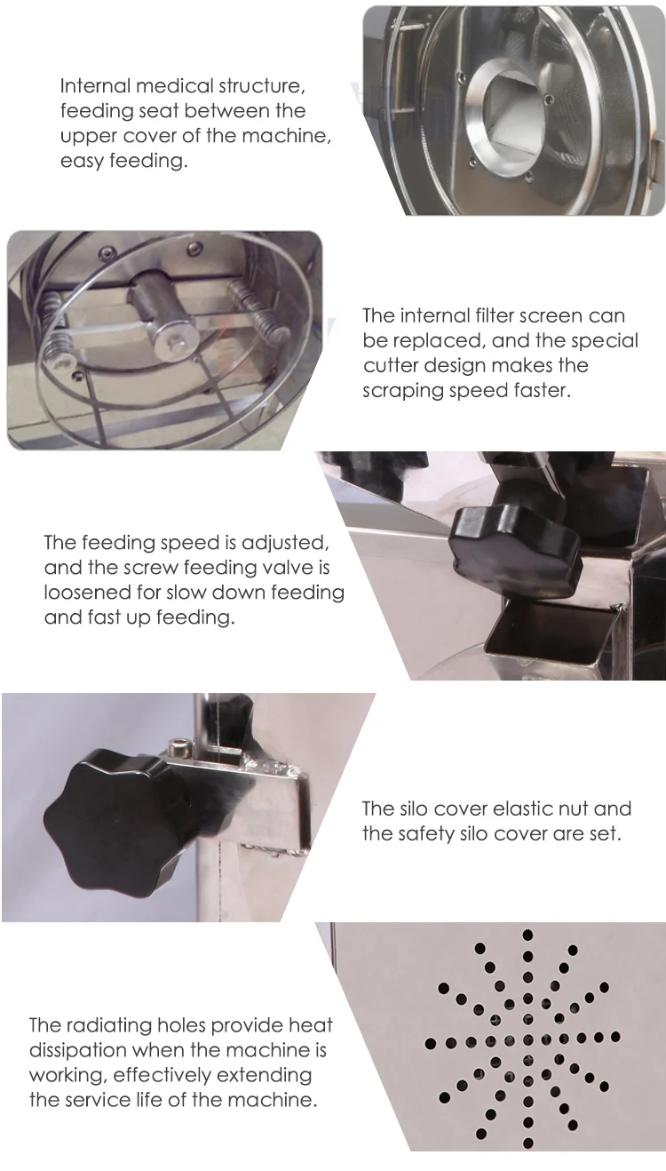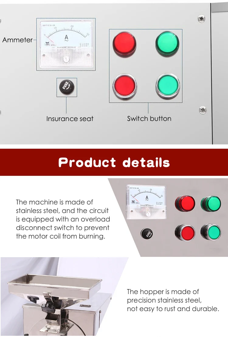 Эта машина предназначена для миндаля, грецкого ореха, арахиса, кунжута, бобов, специй, приправ пищевых продуктов, содержащих масляные вещества, которые легко удаляются из масла во время измельчения и измельчения, Проблема торчащих машин специализируется на НИОКР и дизайне, высокое содержание масла в материалах хорошее Дробление и отсутствие масла, отсутствие торчащих машин. 1 корпус станка и шлифовальный паз-это материал из нержавеющей стали S304 после полировки, соответствующий гигиеническим стандартам. 2. Используется для пищевой фабрики, перерабатывающего магазина, торговых центров, супермаркетов, аптек, клиник, школ, научно-исследовательских учреждений, почтовых отделений и других единиц. 3 резервные щетки для очистки экрана и другие части, могут быть помещены в камеру хранения, не занимают места. 4 машина компактная, простая в эксплуатации, однородная, тщательно разбивается 5. Быстрое и удобное изменение фильтра. 6. Быстрая и простая очистка порошковой частицы паза. 7 специальная конструкция инструмента, использование скорости подачи. Увеличьте содержание масла в материале с помощью грубой сетки. С другой стороны, дробление низкого содержания масла или масляного материала, можно использовать мелкую сетку. 8 использование высокой скорости мощности двигателя 750 Вт, очень тихий, гладкий, мощный. 9 Цепи снабжены выключателем нагрузки, предотвращением и сожжением катушки двигателя.