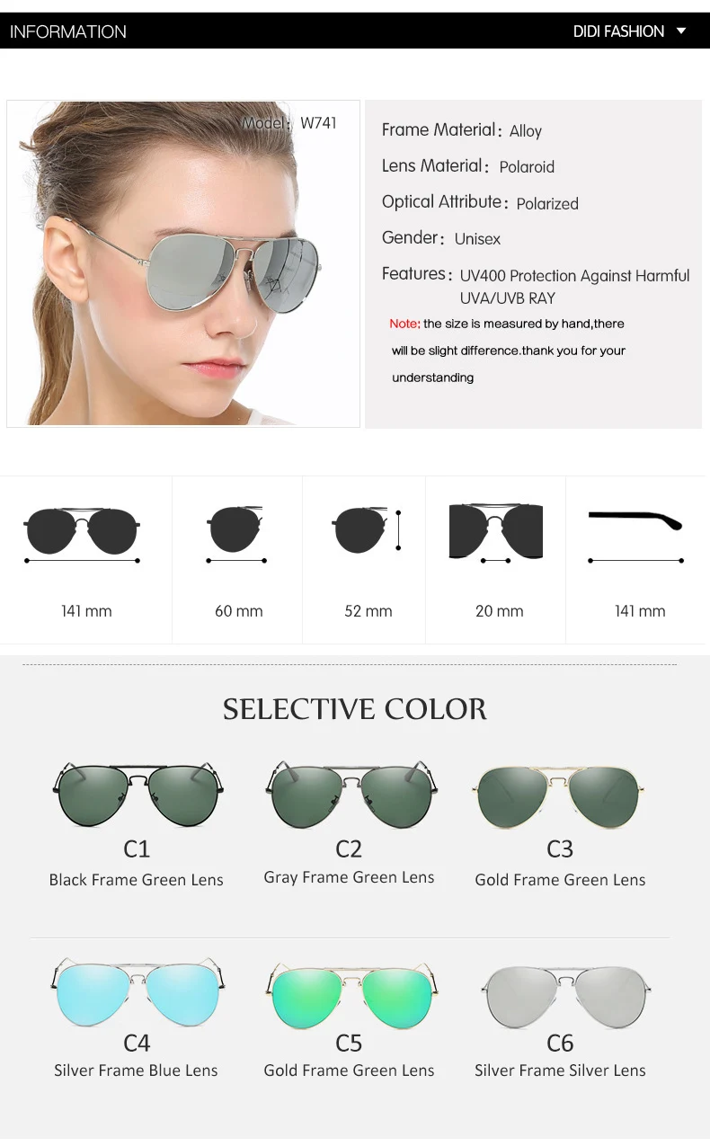 DIDI складные женские поляризационные солнцезащитные очки, мужские роскошные брендовые солнцезащитные очки с плоской оправой из золотого сплава, очки для вождения, очки W741