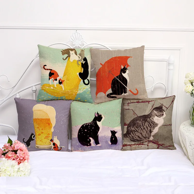 Хлопок, лен, диван, чехол для подушки наволочка, животные, узоры, наволочка, милый кот, печать, наволочка для автомобиля и офиса, наволочка для подушки