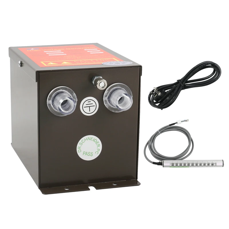 Устройство ионизации: устройство ионизации под высоким давлением под воздействием низкого напряжение, высокий ток генератора, формирование стабильного, высокого давления электрического поля ионизации воздуха плазменной формирования, при высоком давлении воздушный поток выходит из поверхности объекта, для достижения цели нейтрализации статического и пылеудаления.