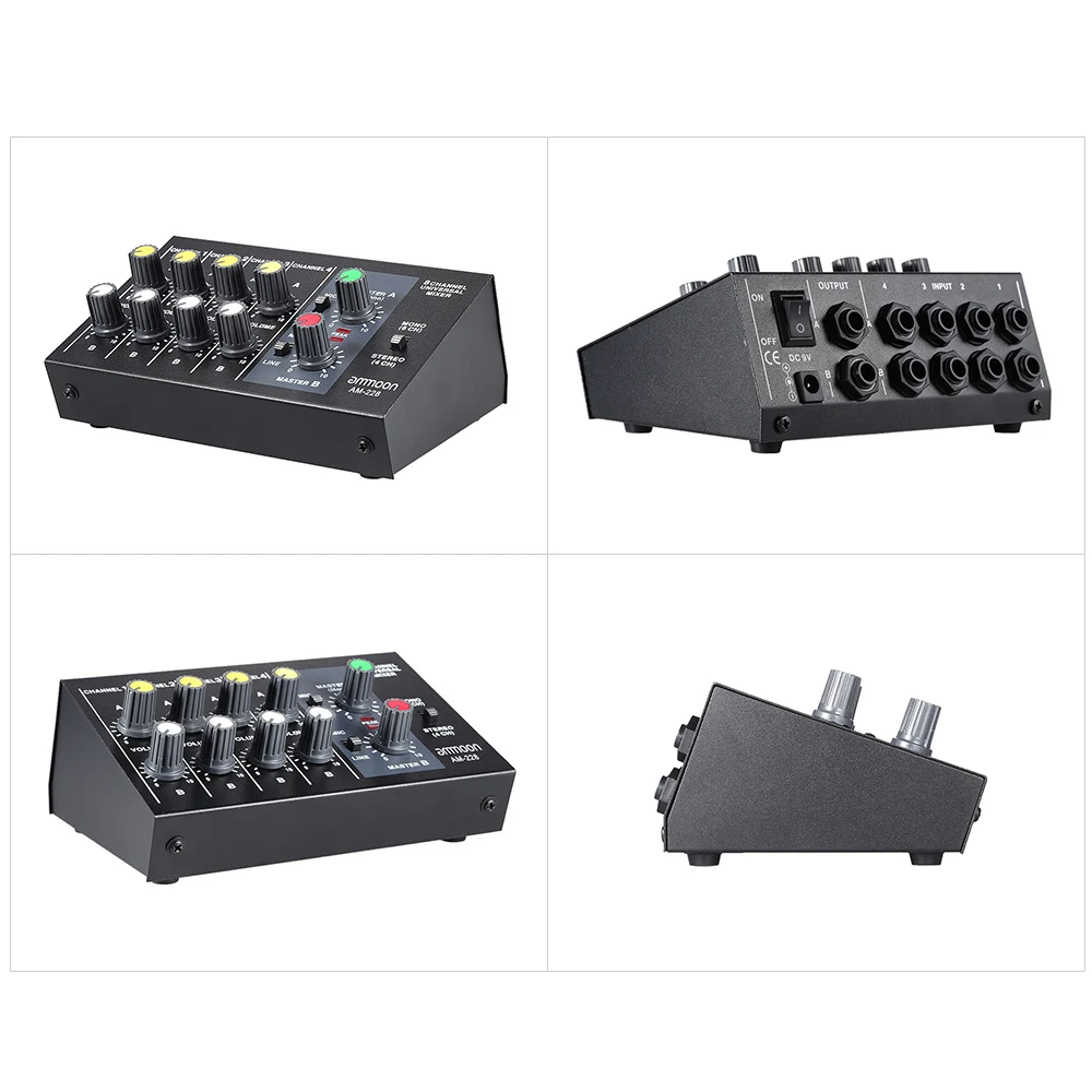 ammoon AM-228 Ultra-compact Low Noise 8 Channels Metal Mono Stereo Audio Sound Mixer with Power Adapter Cable