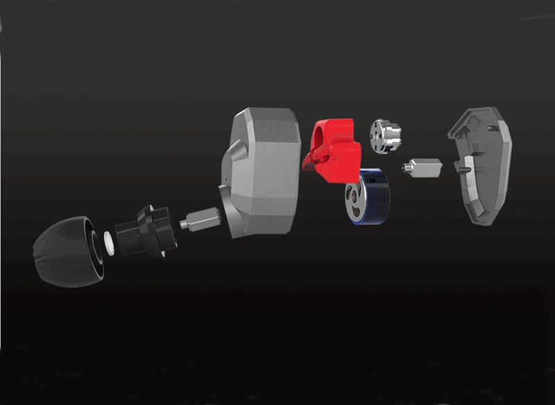 Круглый динамик 10 мм для низких частот, подвижная катушка X2 6.4 для средних частот и металлический динамик X2 30095 для высоких частот.