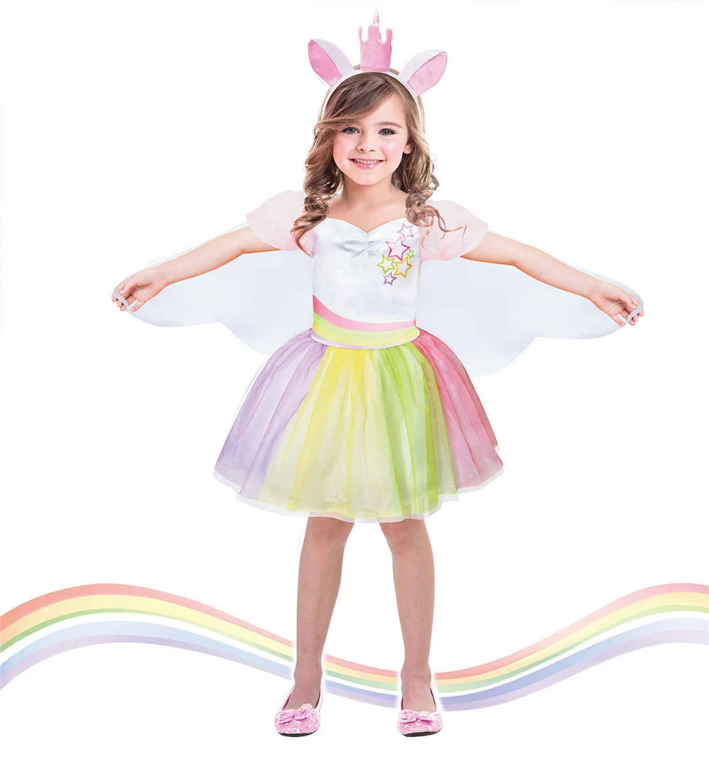 Creative Dress Up As Dance Unicorn Tutu Dress Kids Cosplay Magical Fairy Wings Costumes Cute Girl Rainbow Party Princess Dress
