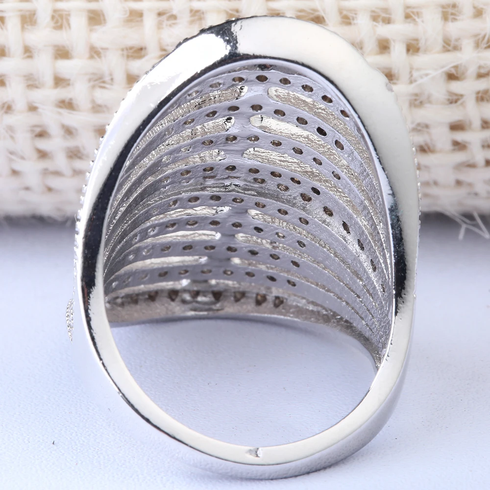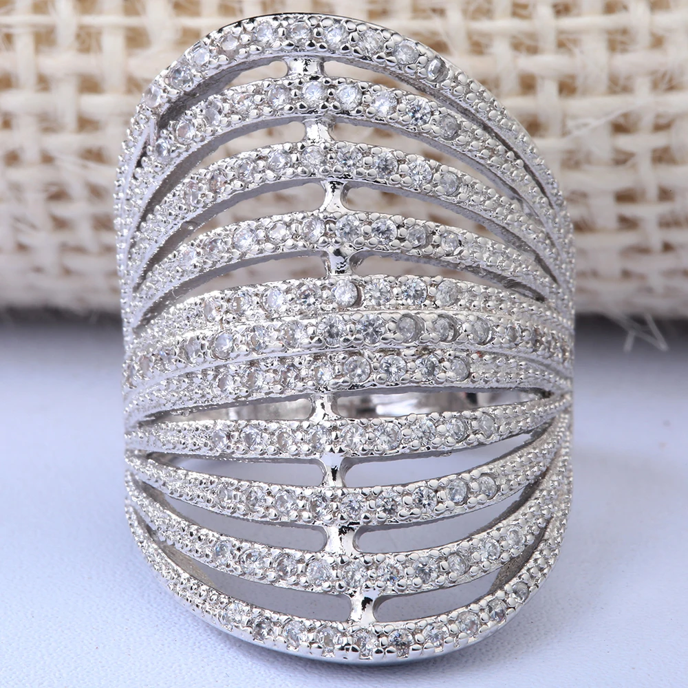 Серебряный цвет белый кристалл кольцо большой широкий несколько рядов наборные модные ювелирные изделия роскошные женские пальчики кольцо для вечерние свадебные Горячие продавец