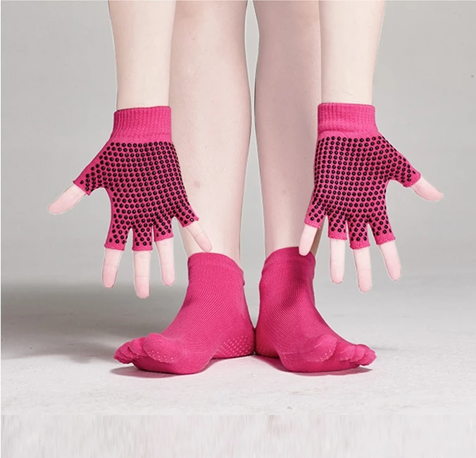 Материал мыска и перчаток: 80% хлопок + 18% полиэстер + 2% спандексОстроносая особенность: полный пять пальцев ног с силиконовой точки сцепленияПерчатки особенность: без пальцев с силиконом точка захватаРазмер: перчатки подходят всем размеру, носок подойдет для женщины 35-39Цвет: розовый, ярко-розовый, синий, черный, серый. фиолетовыйФункция: впитывание пота, антибактериальное, дышащее, мягкое ношениеАппликатор по признаку пола: как мужчина, так и женщинаПодходящий сезон: Всесезонные