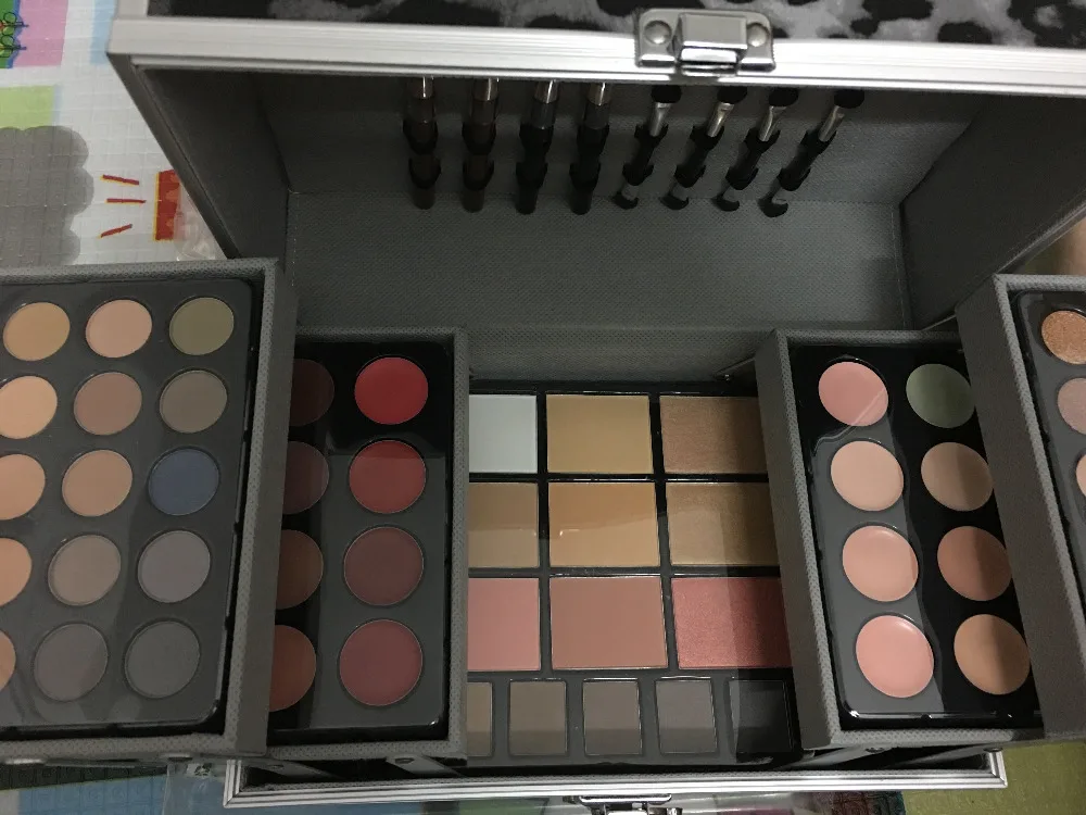 Miss Rose 190 цветов профессиональный набор для макияжа пианино алюминиевая коробка Тени для век Пудра блеск для губ Румяна Многофункциональный косметический инструмент